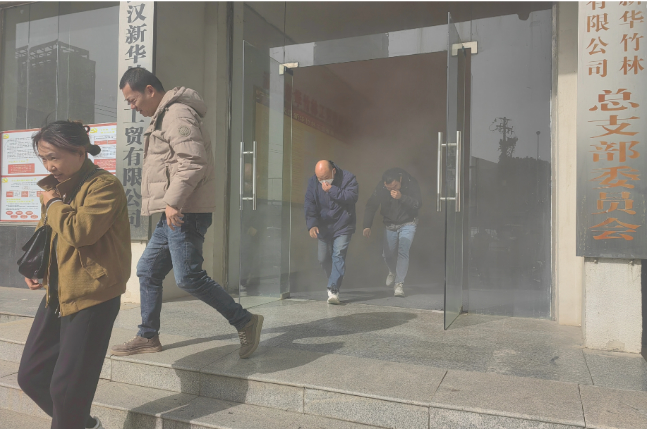 在实操演练应急疏散逃生现场,新华工贸按照原定方案,模拟办公楼电气故障引发火灾,楼内产生大量烟雾,按照“弯腰、掩鼻、不拥挤推拉、右向有序撤离”的方式,全体人员成功逃生。随后,消防员在空旷处为大家展示灭火器和消防水带的使用方法,大家纷纷进行了灭火器实操。