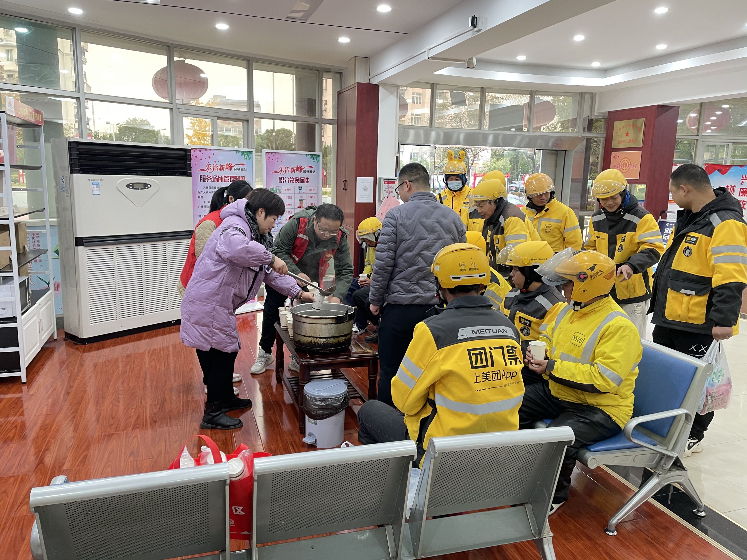 薛峰社区精准聚焦新业态新就业群体现实需求,利用“乐活新峰”户外工作者驿站等服务场所,提供“冷可取暖、渴可喝水、累可歇脚、伤可用药”等服务,打造集休息、服务、充电等多种功能为一体的“暖心驿站”,营造冬日暖“新”氛围。