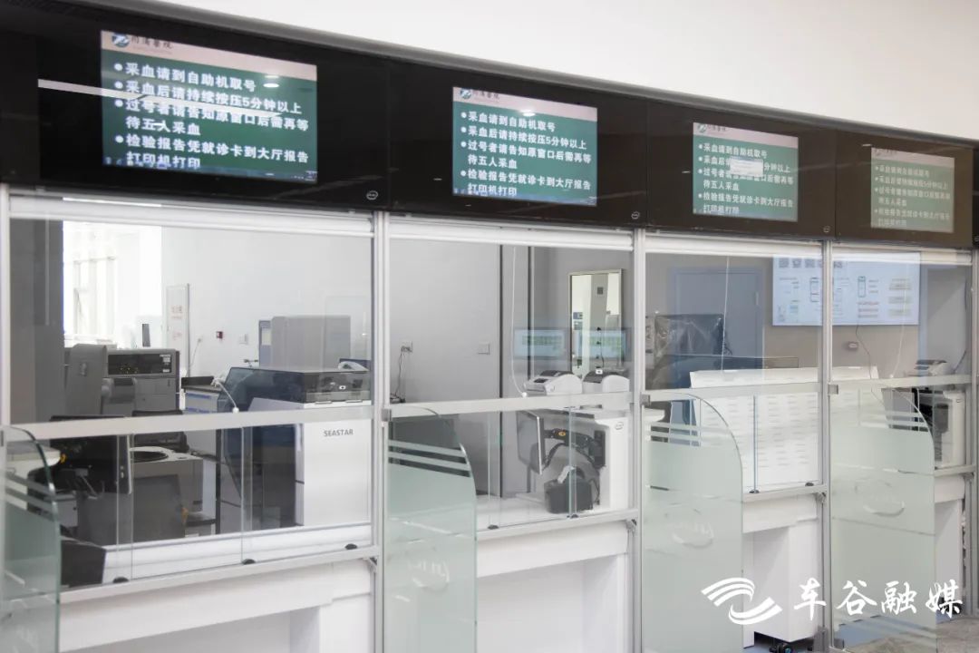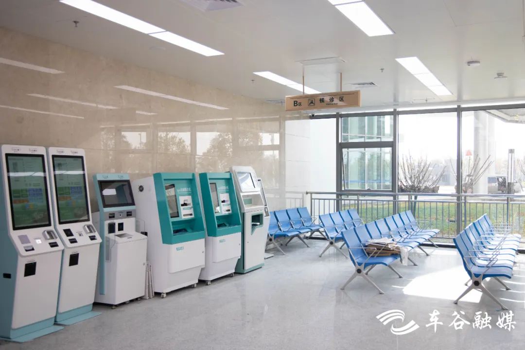 门诊大楼一楼大厅设有分诊台、咨询台,楼层索引指示牌、自助挂号设备均已完成安装、调试。检验科、药房在一楼大厅两侧,患者检查、取药也十分方便。抬头仰望,初冬的阳光透过透明穹顶洒向大厅,温暖明亮。