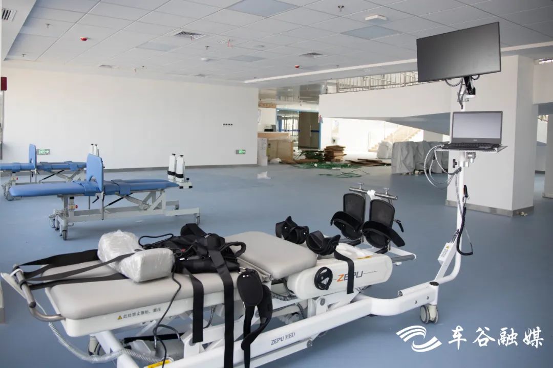 记者在康复医学科看到,空中康复跑道初见雏形,悬吊康复系统、牵引床、肢体康复器、空气波压力治疗仪、下肢外骨骼机器人等康复医疗器械正在安装调试。同济医院康复医学科医生王盛强介绍,这些设备和器械可以对脑损伤、脊髓损伤、肌肉骨骼伤病等进行针对性康复治疗。