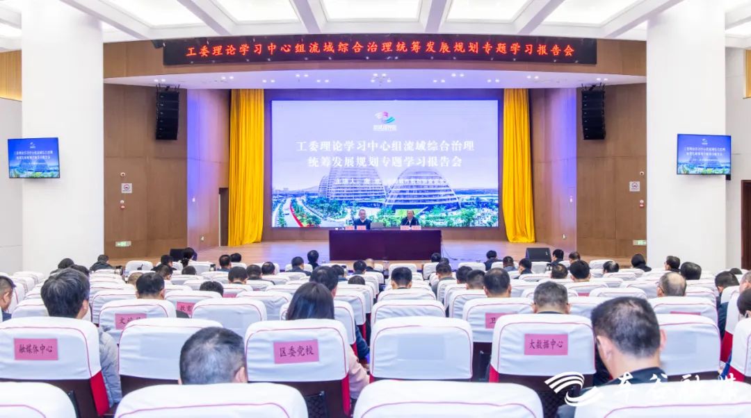 车谷融媒12月7日讯 12月6日,武汉经开区举行工委理论学习中心组流域综合治理统筹发展规划专题学习报告会,深入学习《湖北省流域综合治理和统筹发展规划纲要》精神,学习贯彻省委书记、省人大常委会主任王蒙徽,省委副书记、省长王忠林关于推进流域综合治理的重要讲话精神,为助力湖北加快建设全国构建新发展格局先行区打牢思想基础。中国城市规划协会会长唐凯受邀作专题辅导报告。