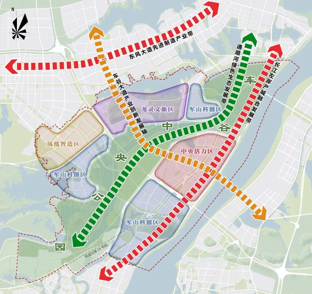 ▲军山新城“一轴两带多组团”空间布局图。