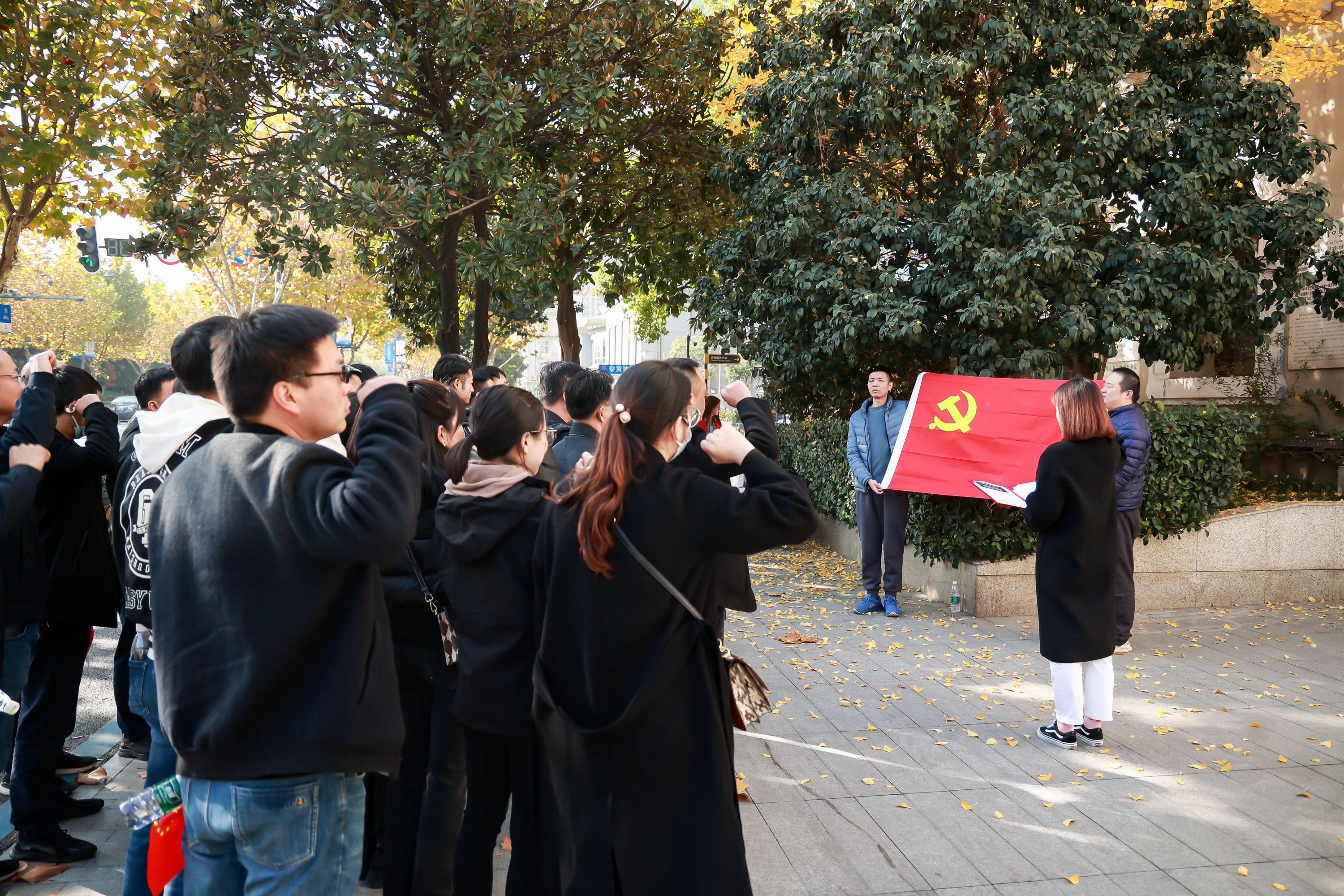 在宋庆龄旧居纪念馆前,薛峰社区黄颖同志带领全体党员面向党旗,重温入党誓词。誓词虽短,字字千钧,表达了党员同志们永葆初心使命,为共产主义奋斗终身的坚定信念和决心。