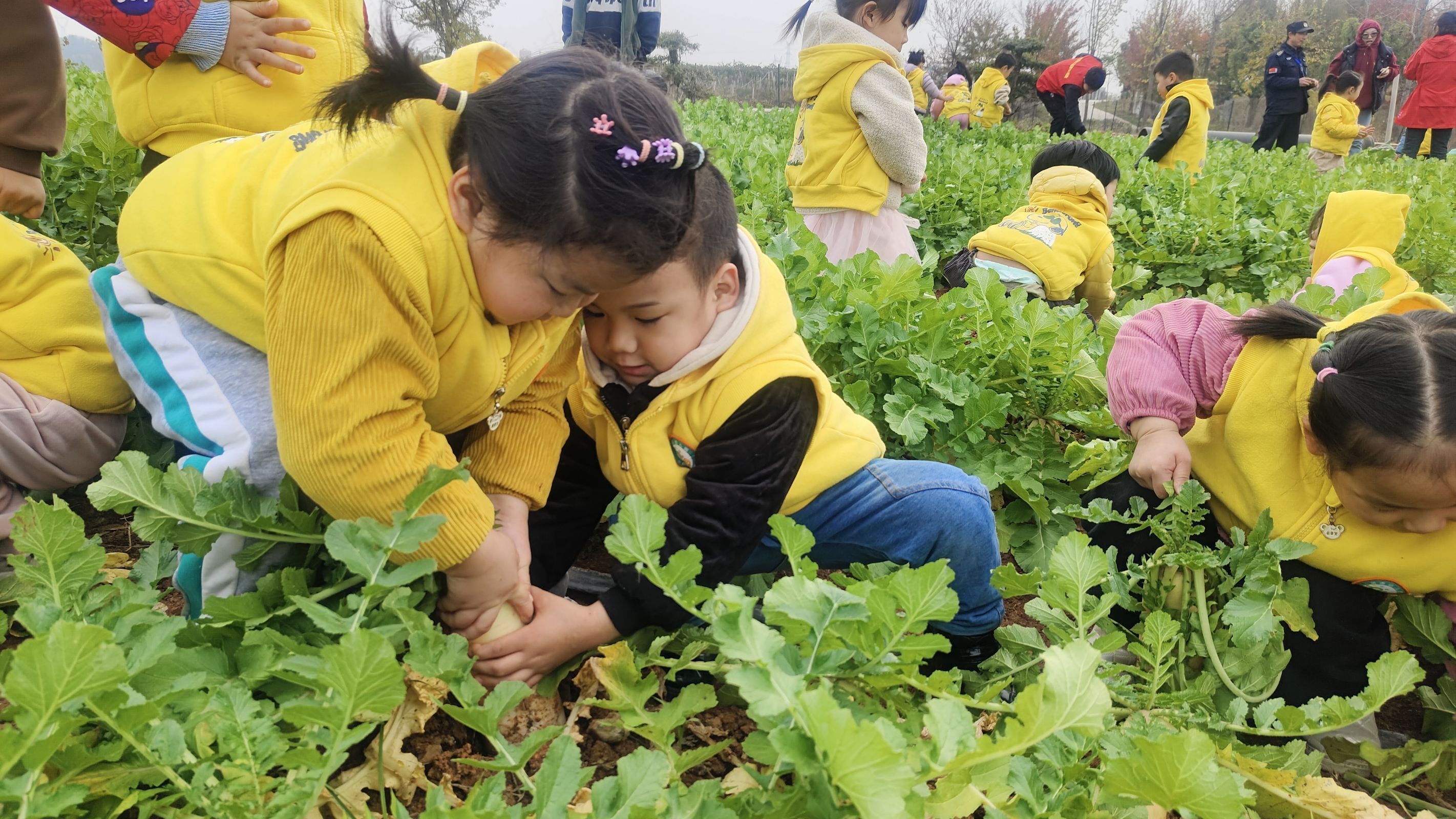 车谷融媒12月14日讯 为让幼儿园的学生们走进大自然,走进生活,感受劳动的快乐,近日,武汉经开区蒲潭幼儿园组织幼儿到状元湖畔开展以“田间地头拔萝卜 劳动教育欢乐多”为主题的劳动体验活动。