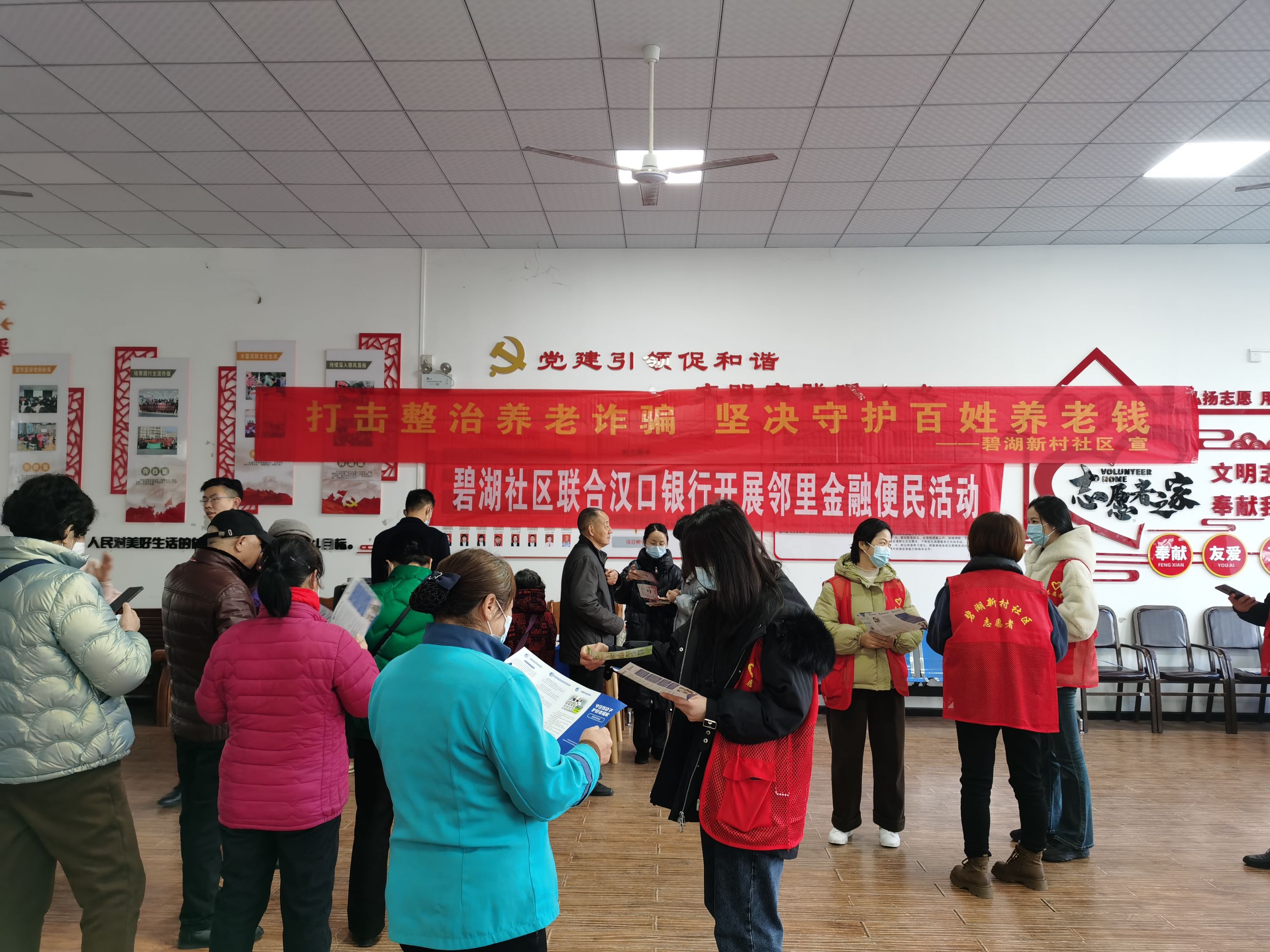 车谷融媒12月19日讯 12月17日,沌阳街道碧湖新村社区联合汉口银行开展“打击整治养老诈骗,坚决守护百姓养老钱”便民宣传活动,加大防范养老诈骗的宣传力度,提升居民识骗防骗的意识能力,筑牢养老诈骗安全屏障。