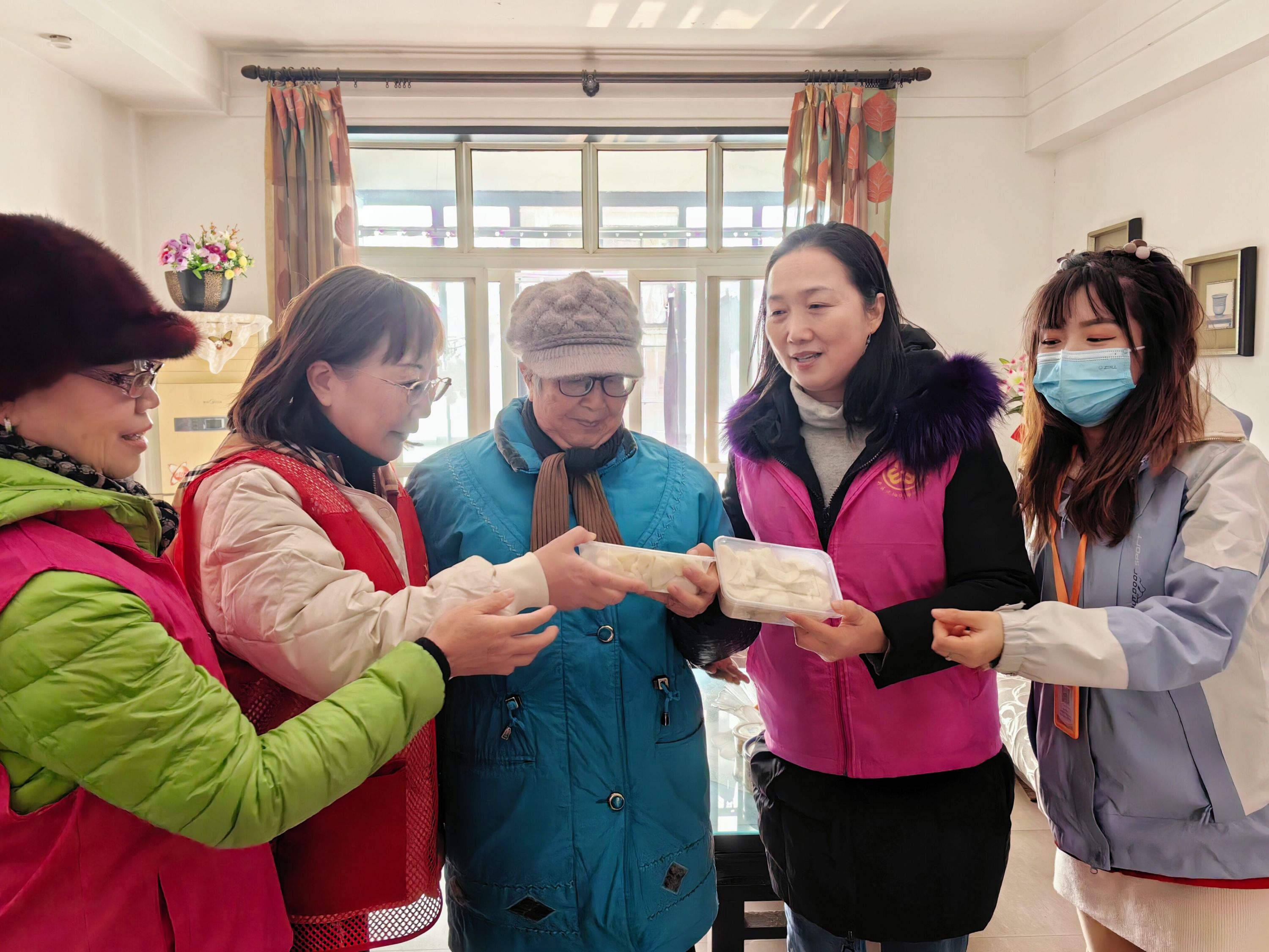 为了让更多的人感受到这份冬日里的温暖,社区居家养老服务中心工作人员和志愿者一起上门为不方便来到现场的空巢、残疾老人送去属于冬至的“暖心”手工饺子,同时关心地询问老人的身体情况,叮嘱老人注意天气变化,适时添衣保暖,有困难及时联系社区。