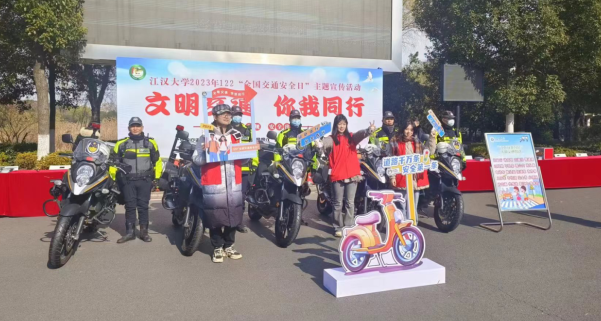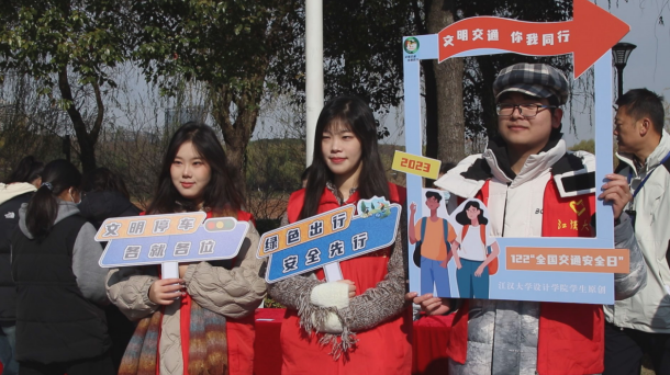 车谷融媒12月28日讯 12月22日,武汉市公安局交通管理局、武汉经开区交通大队联合江汉大学共同开展2023年“全国交通安全日”道路交通安全宣传活动。与以往不同的是,此次用于宣传活动的作品、标识等全部由江汉大学老师、民警指导学生们动手创作。