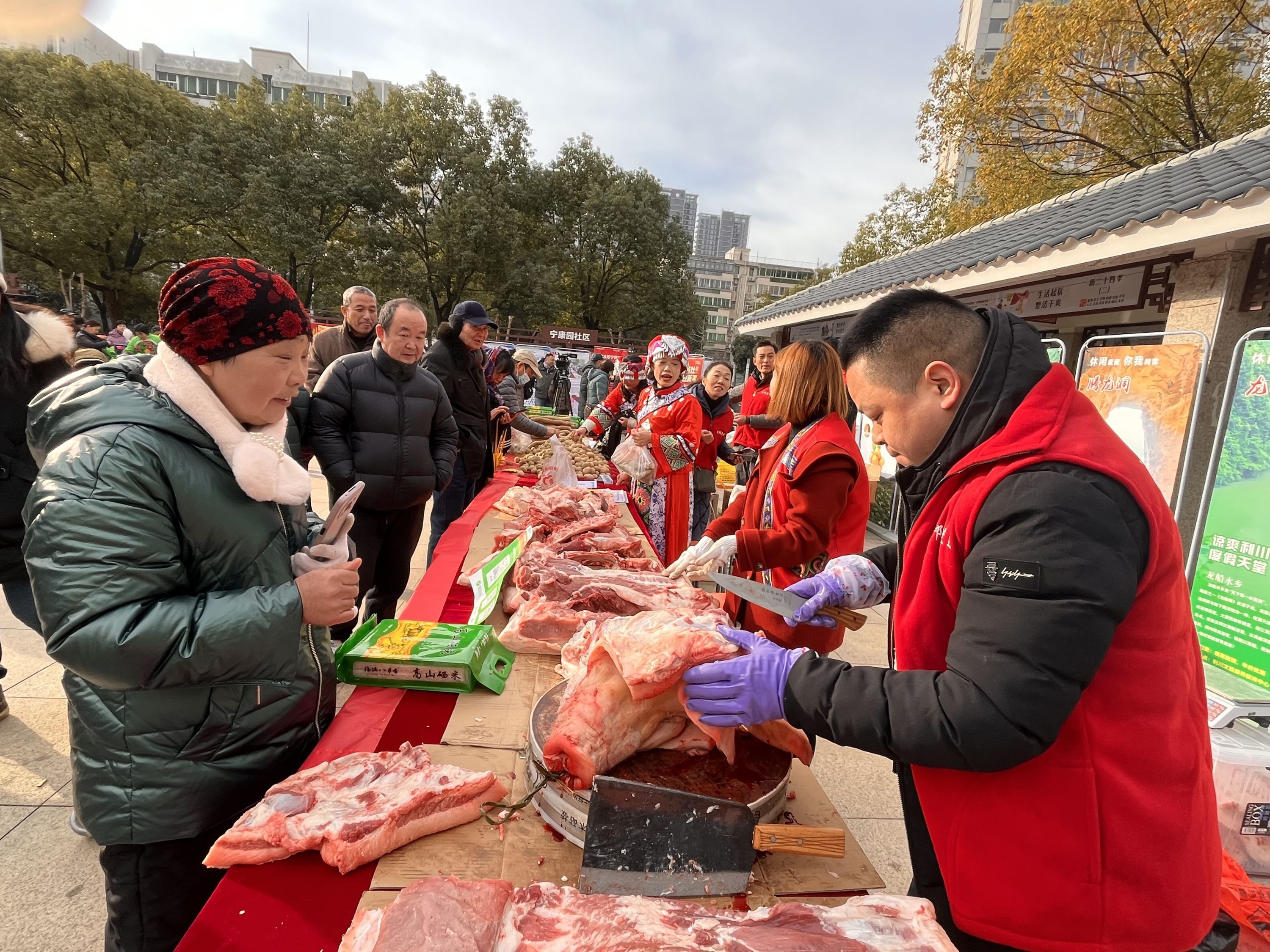 “家里要腌腊肉了,利川的猪肉肉质很好,今天过来看看!”专程前来的陈女士为家人购买了十多斤猪肉。