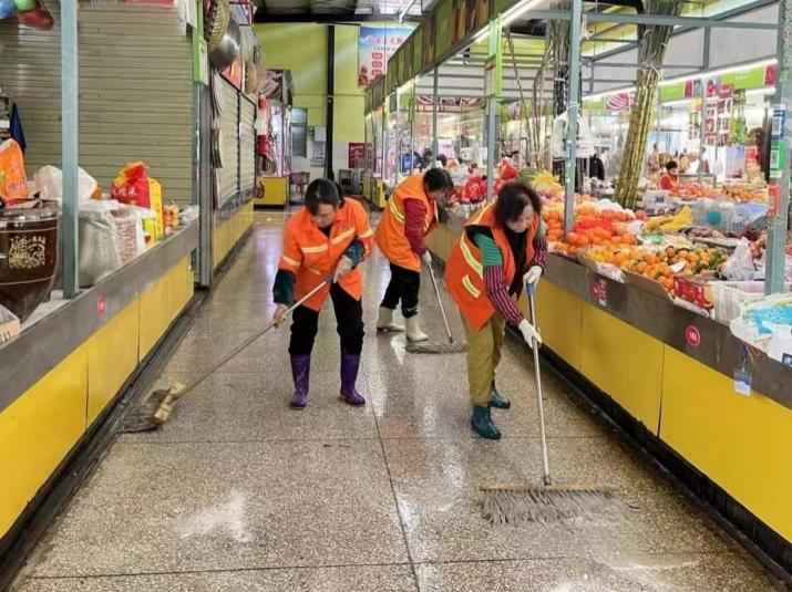 车谷融媒12月29日讯 元旦、春节临近,连日来,武汉经开区沌阳街道综合执法中心对辖区各农贸市场开展节前专项整治。加强对市场环境整治及食品安全监管力度,提升农贸市场环境卫生及经营秩序的同时守牢食品安全底线。