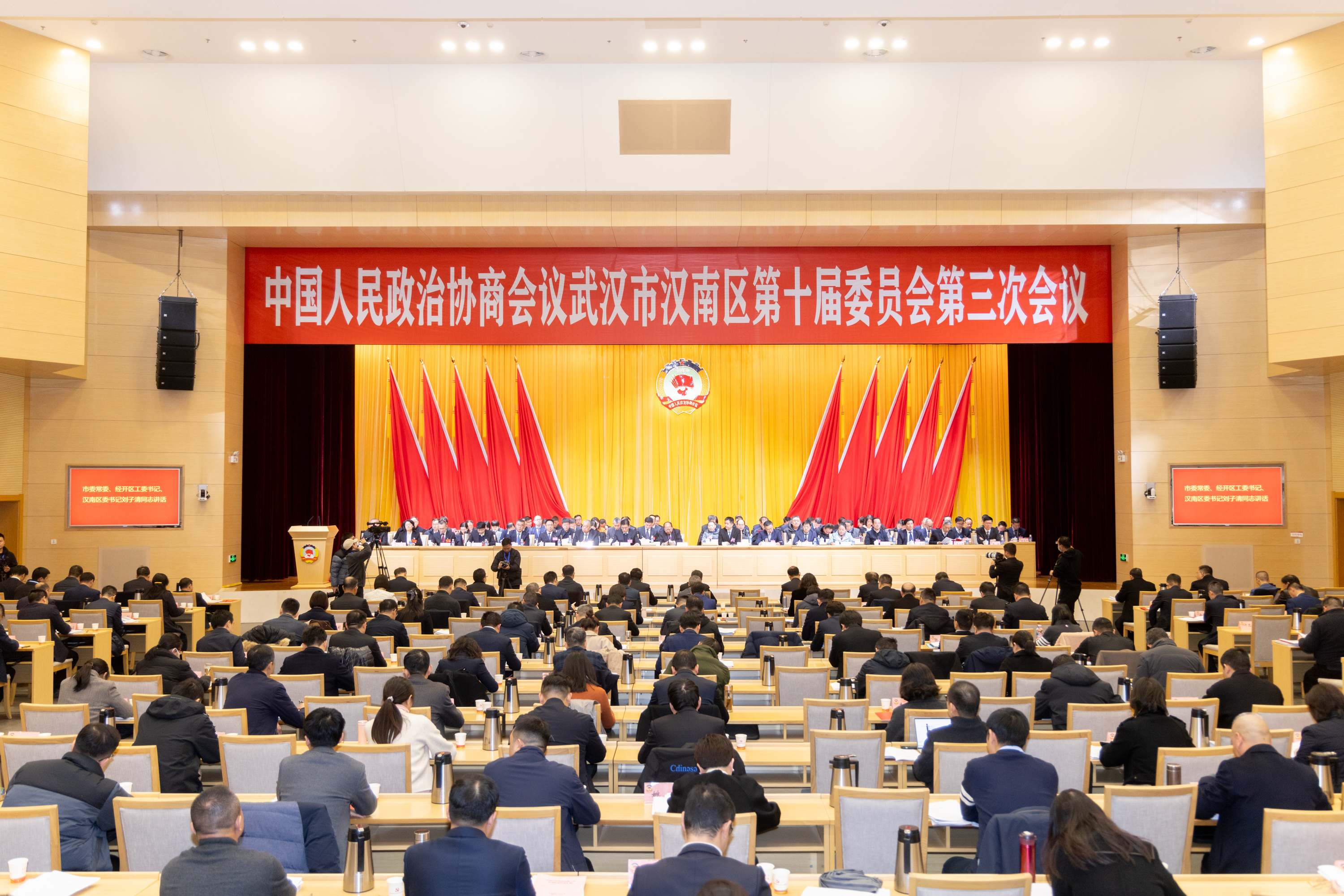 中共武汉市委常委、武汉经开区工委书记、汉南区委书记刘子清,中共武汉经开区工委副书记、管委会主任、汉南区委副书记、区人民政府区长唐超等领导同志出席会议,听取会议发言、参加协商大会,与委员们共谋发展大计。武汉市政协党组副书记、副主席彭浩同志代表市政协致辞。会议审议批准徐安同志代表政协汉南区第十届委员会常务委员会所作的工作报告,审议批准郭永才同志代表政协汉南区第十届委员会常务委员会所作的提案工作报告。通过了《关于打造汽车产业“新三地” 加速推进车谷产业创新大走廊建设的建议案》。委员们列席了汉南区第十届人民代表大会第三次会议,讨论并赞同政府工作报告及其它报告。广大政协委员以饱满的政治热情和高度的社会责任感,认真履行职责,严守会风会纪,积极协商议政,广泛凝聚共识。