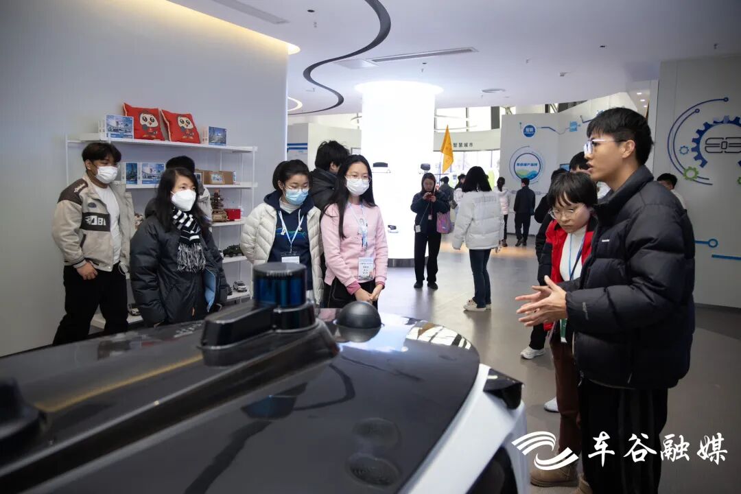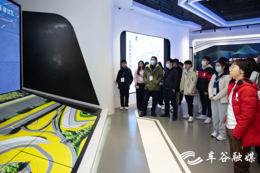 武汉智能网联汽车测试场将T5级测试场与F2级赛道相结合,拥有10大测试区,可组合形成130余种测试场景。在智能网联汽车测试场,到访中学生们参观展厅、赛道,了解智能网联汽车相关知识。