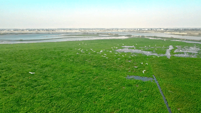 喜鹊湖湿地位于东荆河入江口,是长江流域防洪体系和生态水源的重要组成部分,也是湖北省唯一江河湖连通、保持天然野性特征的入江口湿地。湿地内共有野生动植物689种,国家级保护物种32种,包括国家一、二级保护鸟类24种。