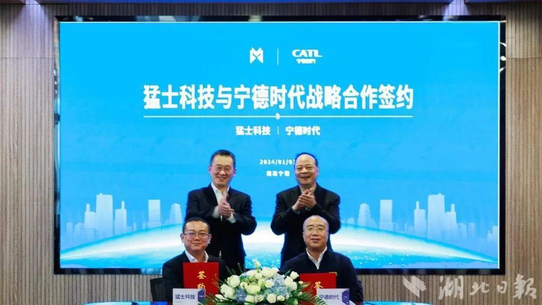 1月3日,猛士科技与宁德时代在福建宁德签署三年战略合作协议,双方将发挥各自优势,在新型电池产品开发、神行超充电池应用、科技创新项目、市场推广等多个维度展开紧密合作,共同打造新能源汽车行业跨领域合作新范本。