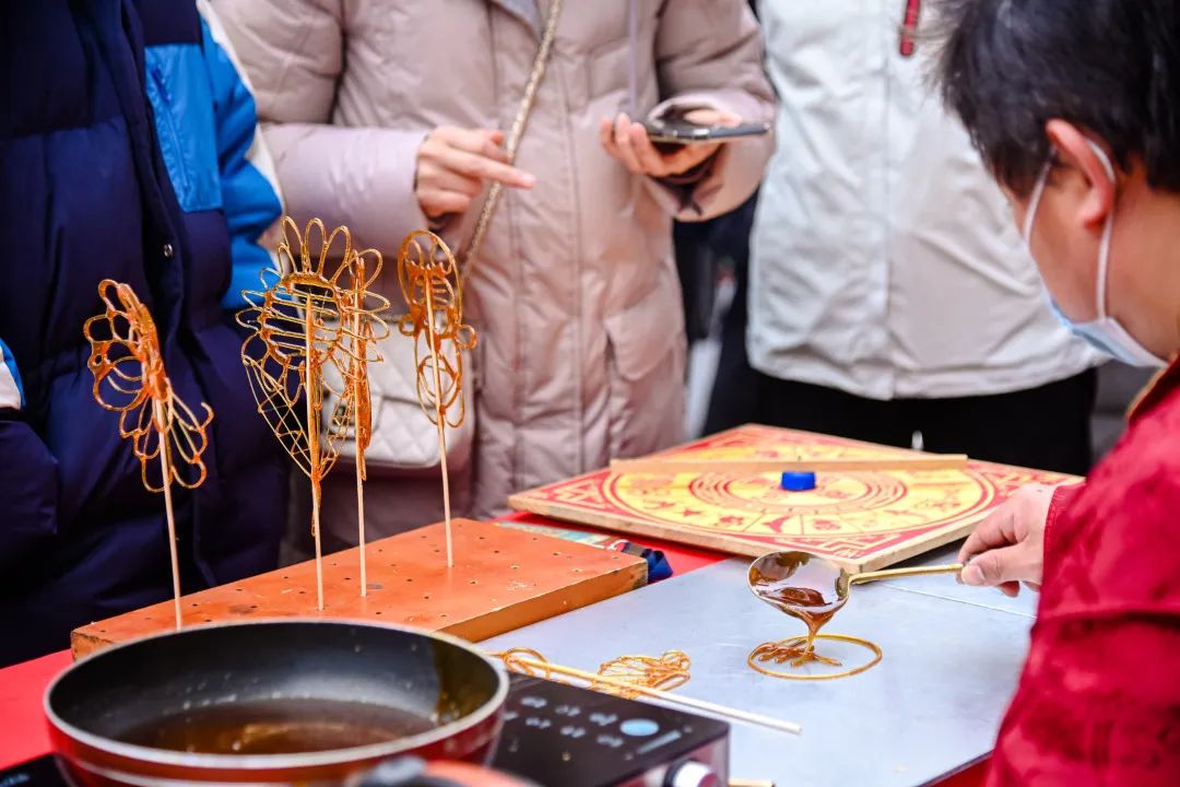 好吃、好逛,美食节主打的就是“体验感”。捏一个造型独特的面人,选一个富有吉祥寓意的糖画,这些平时很难接触到的非遗技艺,此刻都近距离呈现在眼前。