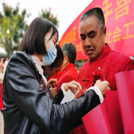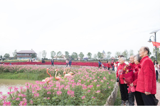 繁华似锦的花海中,社区党委副书记朱洪斌和社区儿女们为金婚伉俪送上诚挚的祝福、颁发金婚纪念证书、礼献美丽的鲜花。一对对银发老人携手漫步花丛,相互搀扶、笑逐颜开。喜庆的唐装,雅致的胸花,成了景区一道亮丽的风景线,不时吸引周边游客围观祝福。