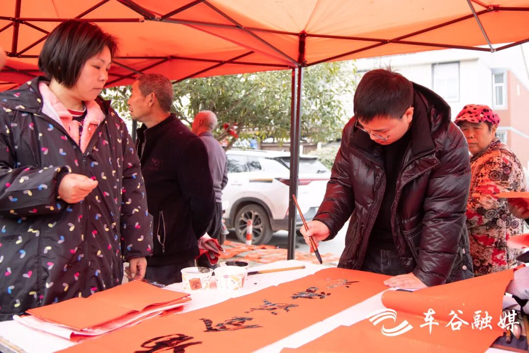 在文艺创作展区,书法家、民间艺术家挥毫泼墨,为群众免费书写春联。200多副春联内容丰富多彩,有歌颂党的,也有歌颂美好生活的,还有迎新年贺喜的……深受村民喜爱。一些书法家还应群众自己提供的文字,专门送上“定制版”春联。“文艺演出质量很高,本地民俗也很有特色,今天的活动大家都非常喜欢。”汉江村村民涂德利说。