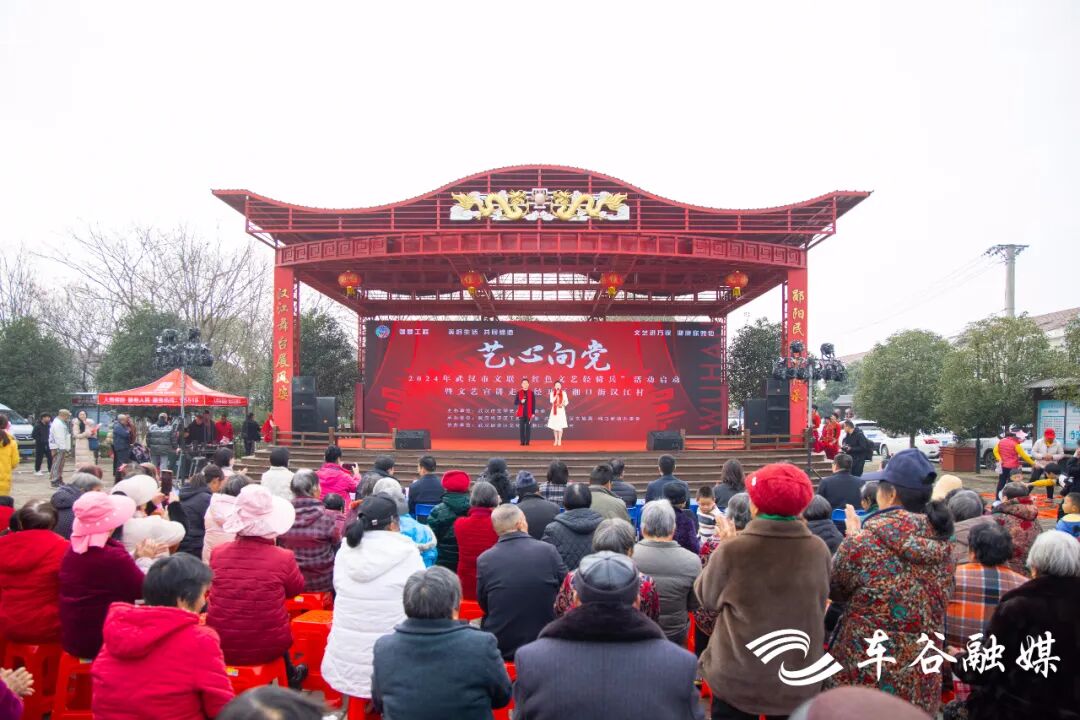 车谷融媒1月7日讯 2024年新春佳节将至,1月6日,武汉市文联“红色文艺轻骑兵”迎着冬日暖阳,走进武汉经开区湘口街汉江村,开展“我们的中国梦·文化进万家”2024年首场活动,为村民们带来了一场精彩的文化盛宴。