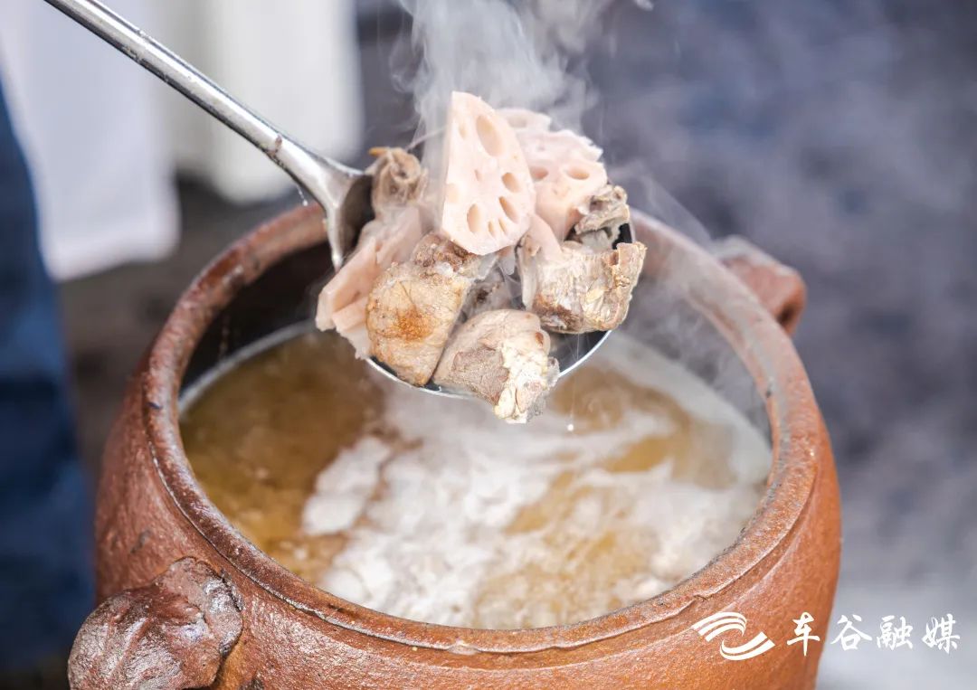 吊子煨汤的摊位上,各式滋补汤品已经就位,咕嘟嘟冒着泡泡,随意搅动一下,香味四溢……