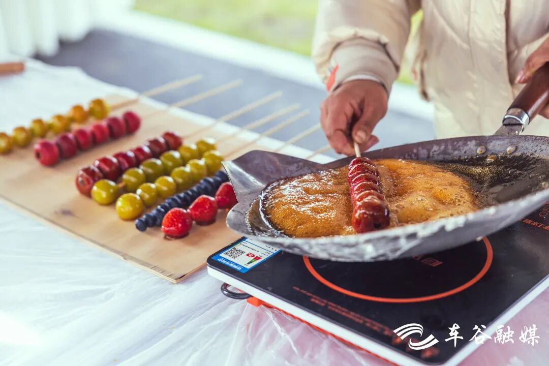 “爸爸,我要吃糖葫芦。”家住体育中心附近的市民胡先生趁着天气晴好,拖家带口“寻味”而来,女儿在做糖葫芦的摊位前驻足观看。摊位上,山楂、草莓、阳光玫瑰,甚至连车厘子都穿成了串,躺在案板上等待与糖浆的“相会”,平底锅中,糖水在高温下变化成糖色,摊主说:“小朋友,再等一两分钟,马上就好啦。”