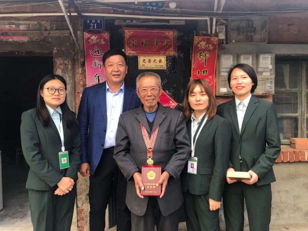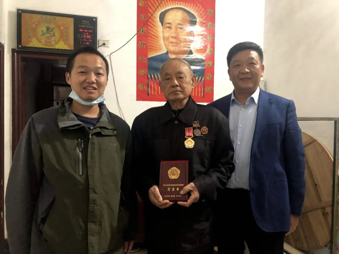 10月21日晚,武汉经开区(汉南区)东荆街退役军人服务站工作人员来到6名抗美援朝老兵家中,向他们赠送“中国人民志愿军抗美援朝出国作战70周年”纪念章。