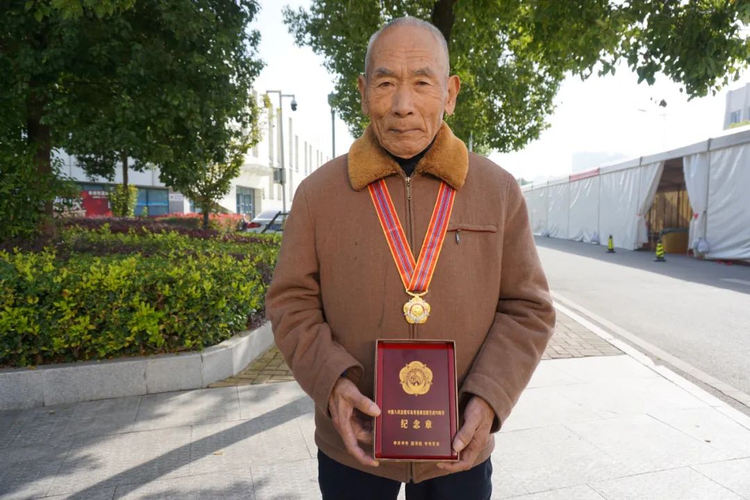 黄爹爹紧紧拽着手中的纪念章,脸上露出喜悦的笑容,作为一名农村青年,得知祖国在经历抗美援朝战争,十八岁的他毅然选择参军入伍,并于1953年踏上了朝鲜战场,关于战争的记忆已然记不大清,但仍记得他曾和战友踏过鸭绿江时,唱过那首最时髦的歌曲“雄赳赳,气昂昂,跨过鸭绿江。”
