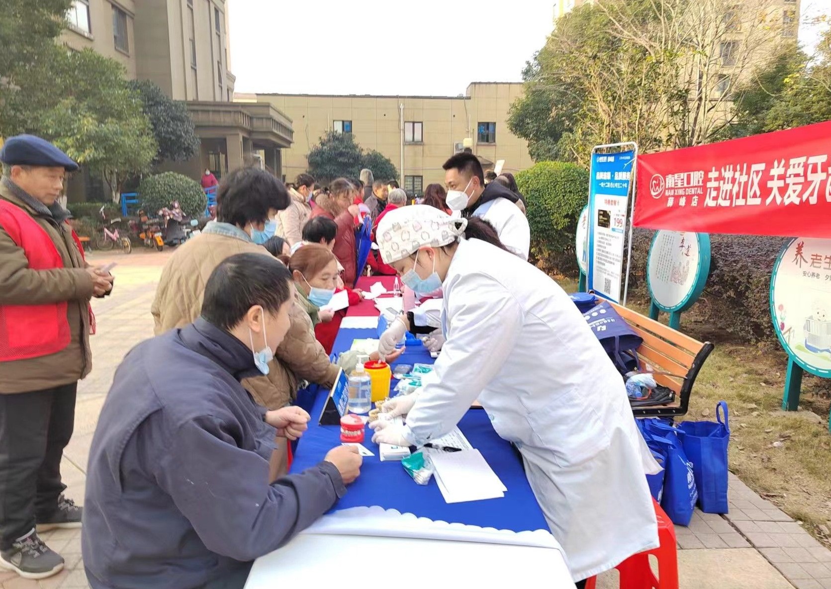 此次活动项目包括免费测血糖、血压、中医口腔、耳鼻检查等;现场免费擦鞋、免费磨刀;另外,阳历新年初始,枫树湾社区还为大家准备了春节对联一副。