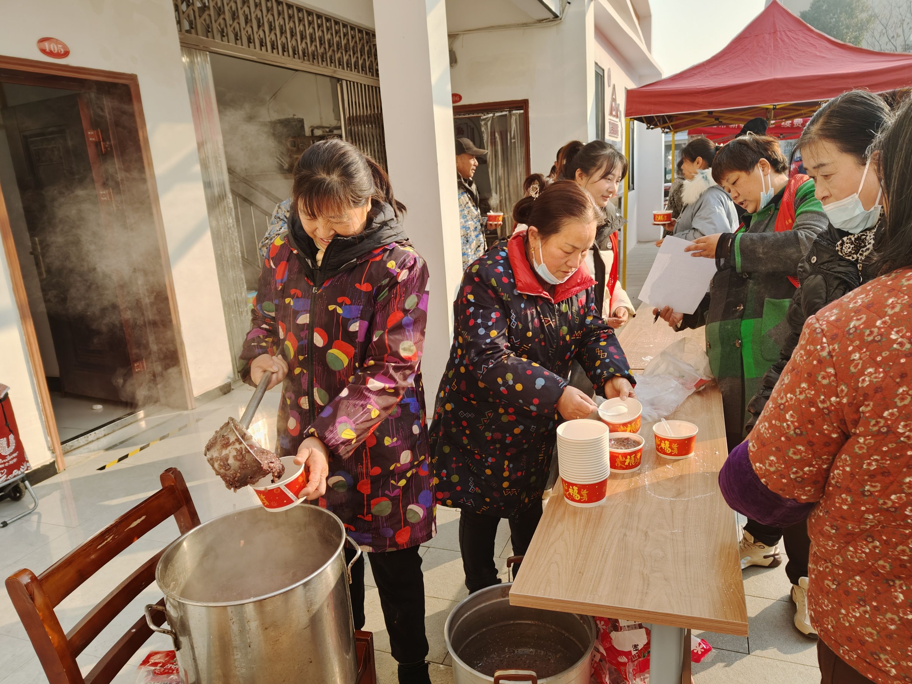 经过两个小时的悉心熬制,热腾腾的腊八粥便制作完成,出锅的一瞬间就粥香四溢、浓郁扑鼻,排队的居民纷纷围了过来,递碗、盛粥不亦乐乎,大家边吃腊八粥边拉家常,有说有笑,其乐融融。70多岁的老党员左从林感慨地说道:“社区想得真周到,一碗腊八粥喝下去,我这身子板更硬朗了,心里别提多暖和了!”