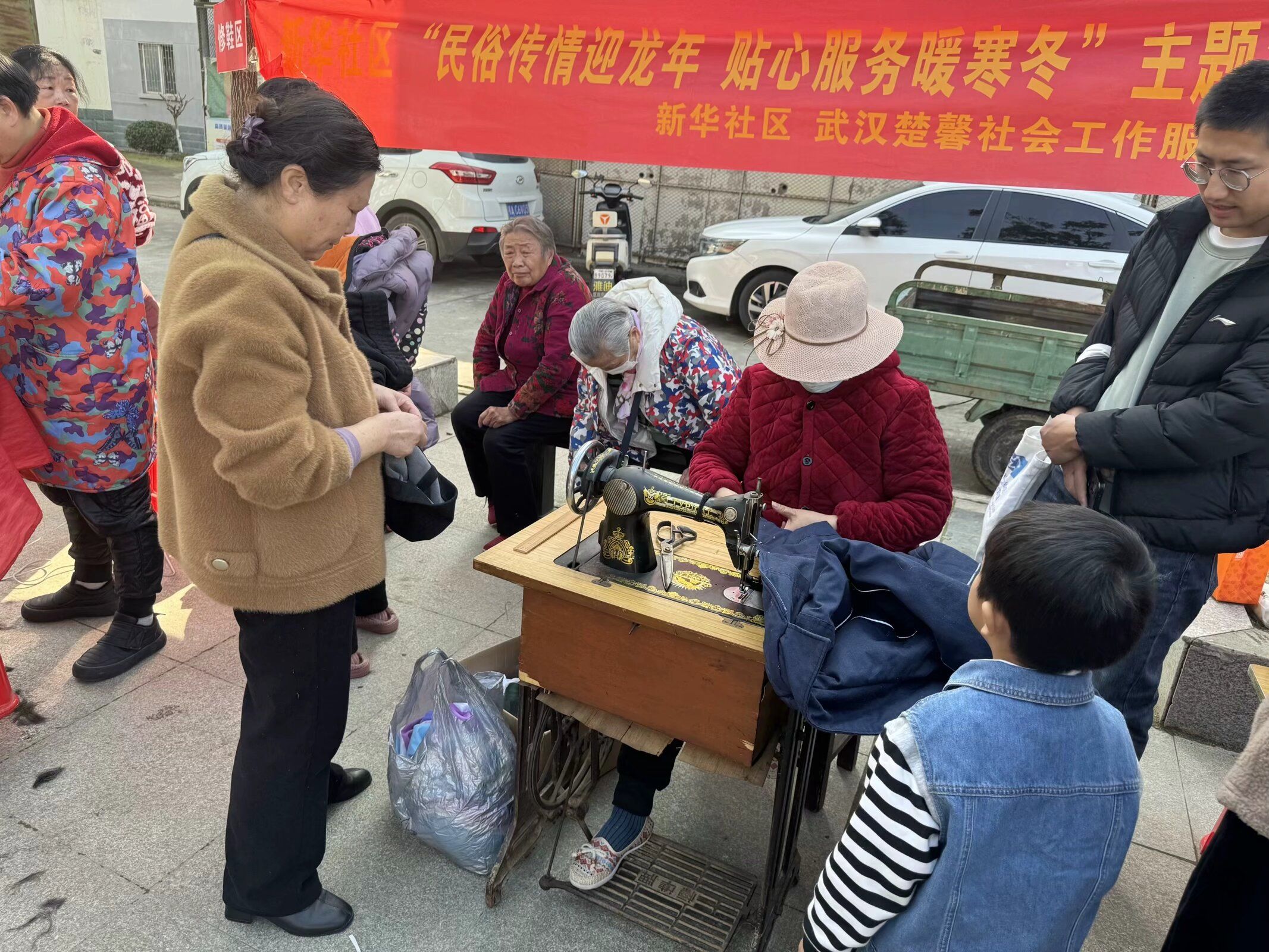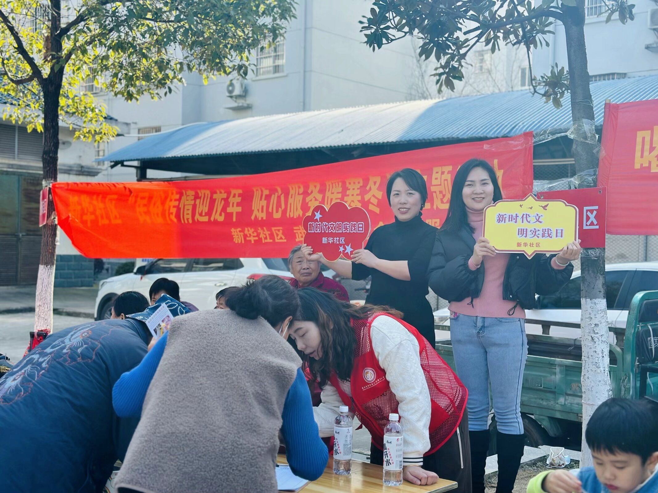 车谷融媒1月16日讯 近日,沌阳街道新华社区新时代文明实践站开展“民俗传情迎龙年 贴心服务暖寒冬”便民服务。