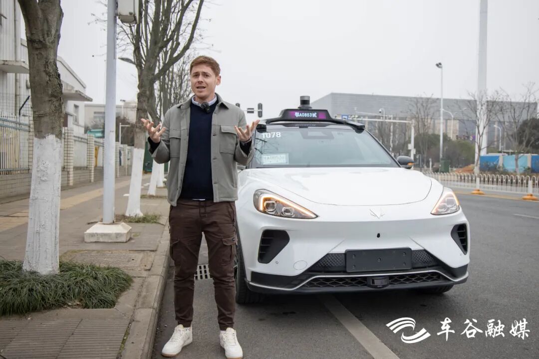 车谷融媒1月16日讯 “哇哦,这辆车居然真的没有司机。”1月15日,来自英国的Jason Lightfoot通过手机软件在武汉商学院北二门呼叫“萝卜快跑”,“早就听说武汉经开区有无人驾驶的出租车,我对这次体验充满期待。”