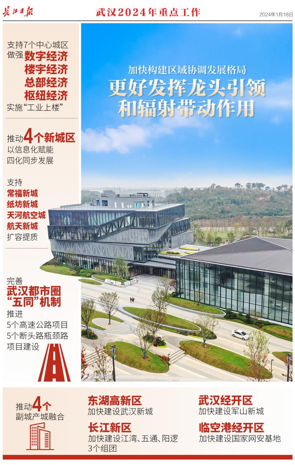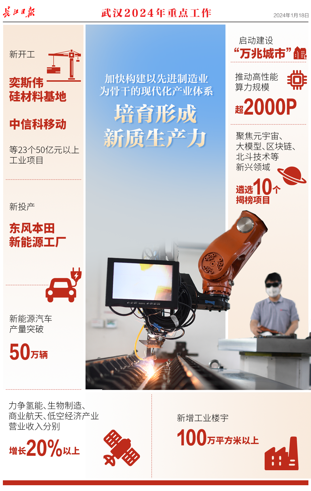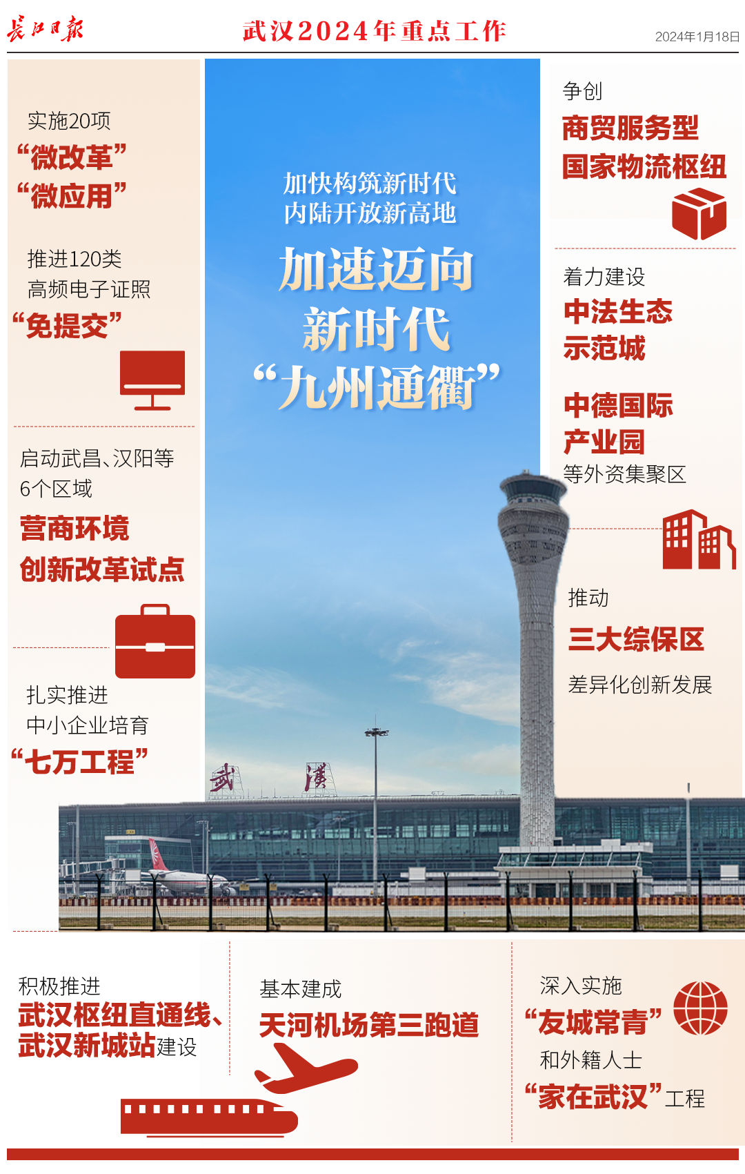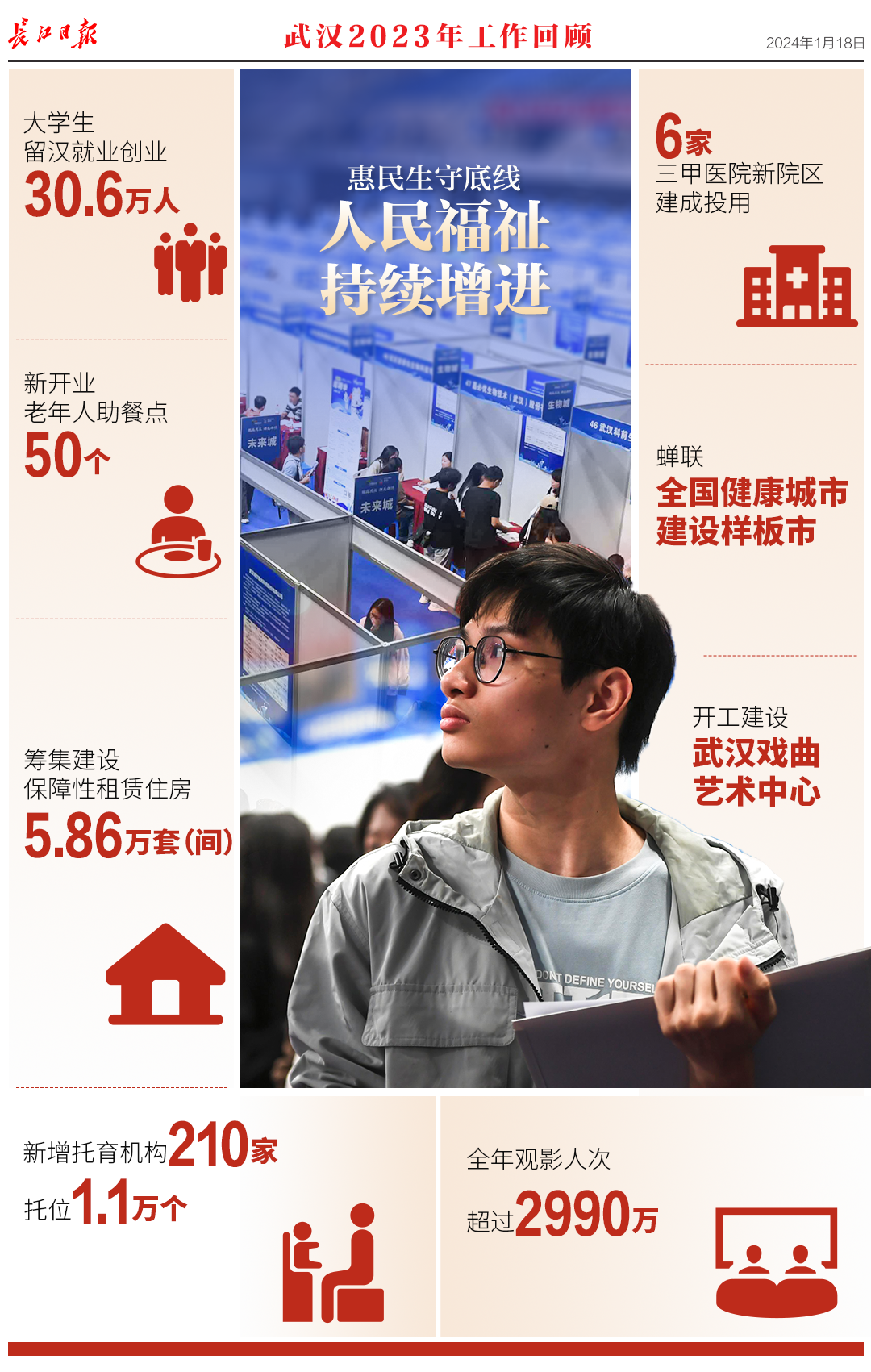 1月18日,武汉市第十五届人民代表大会第三次会议开幕,《政府工作报告》提交审议。报告回顾了2023年工作,提出了2024年重点工作。