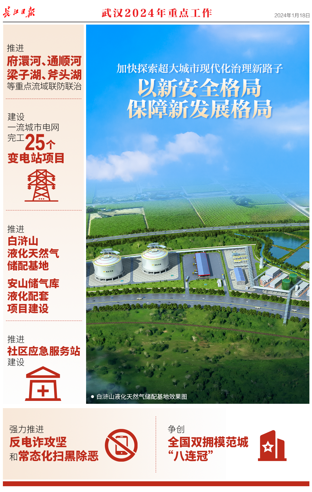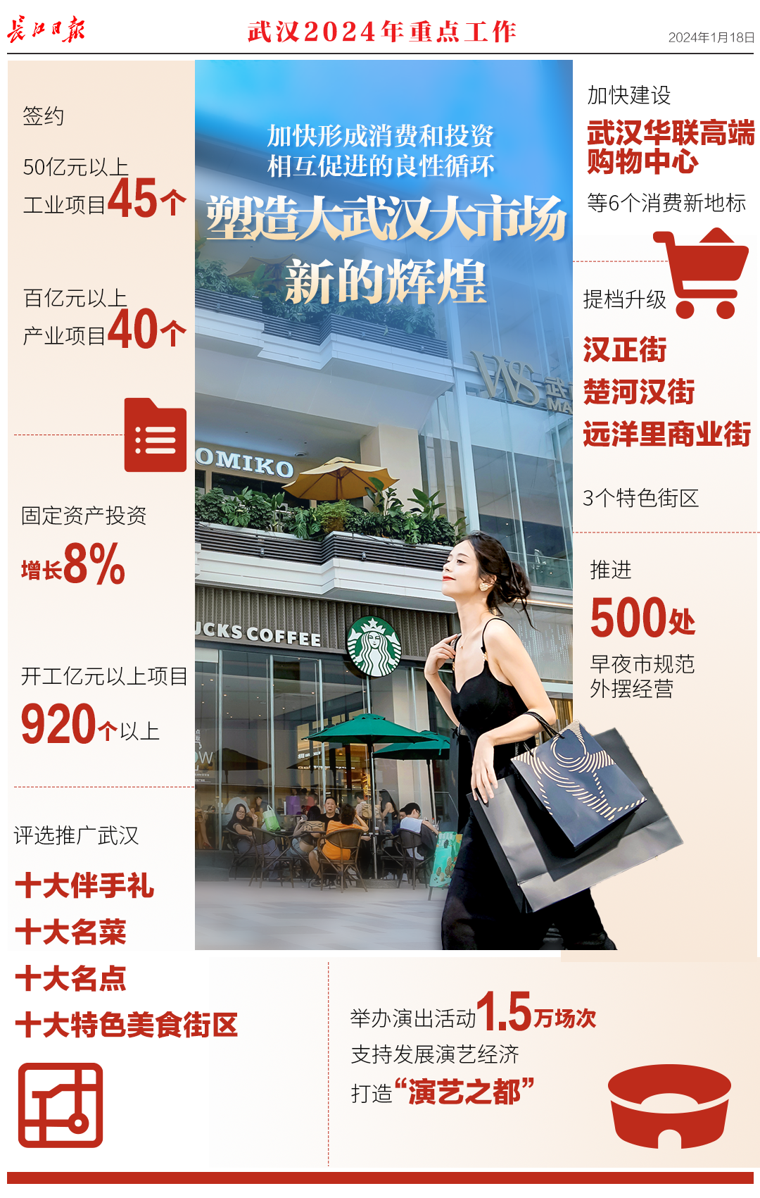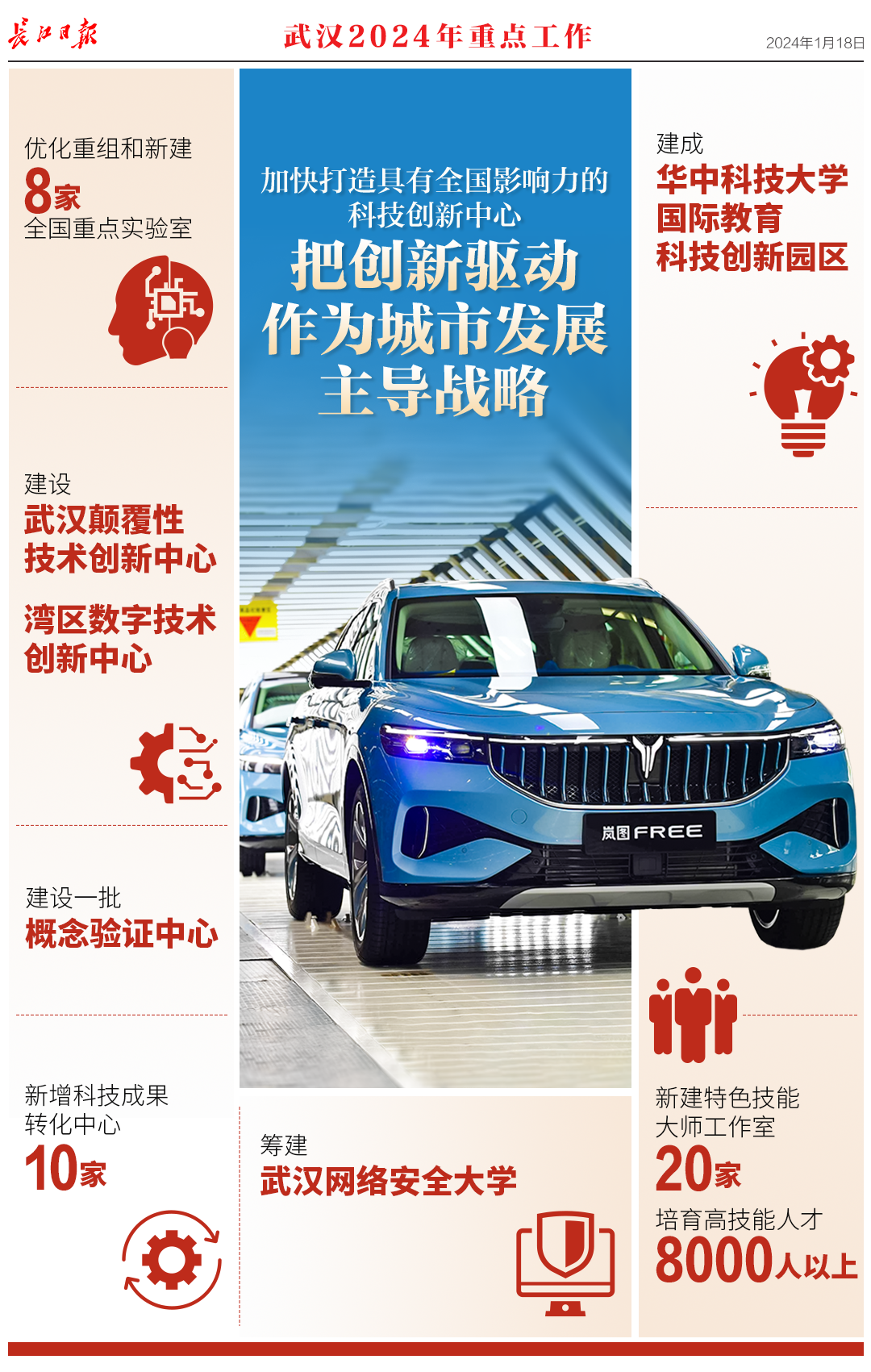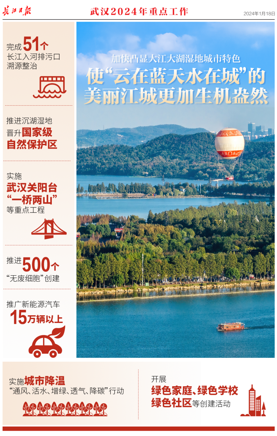 1月18日,武汉市第十五届人民代表大会第三次会议开幕,《政府工作报告》提交审议。报告回顾了2023年工作,提出了2024年重点工作。