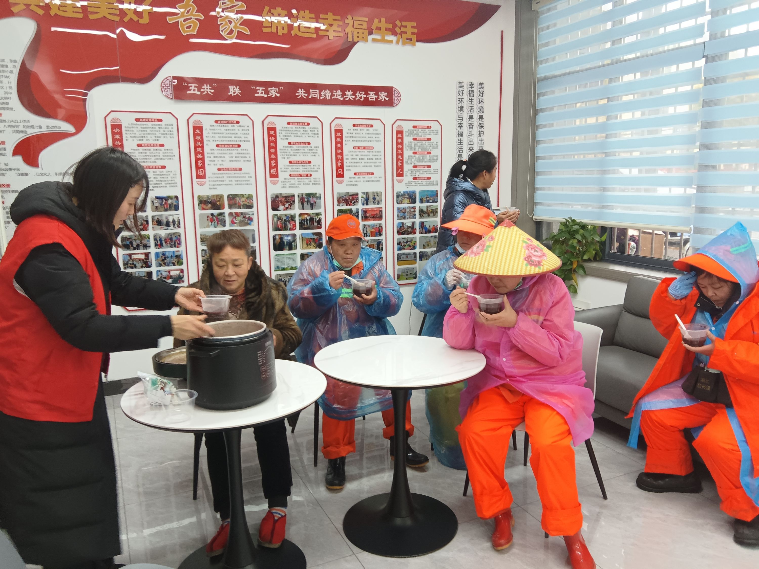 一大早,廖家堡社区"吾家驿站"很是热闹,环卫工人、快递小哥等户外工作者及社区老人欢聚一堂,共品腊八粥,共享“吾家乐”。一碗热腾腾的腊八粥,不仅营造了节日氛围、传承了传统文化,更是爱心驿站对严寒中坚守岗位的户外工作者的浓浓敬意和深切关爱。