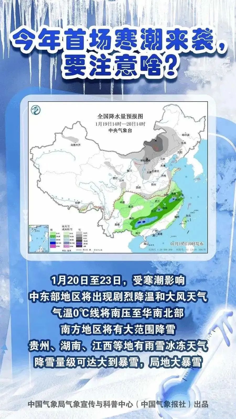 这股冷空气,不仅携风带雨,还可能会送来2024年的第一场雪。气温骤降,请市民随时关注天气变化,添衣保暖。大家出行,注意交通安全。室内取暖时,记得适度开窗通风,防止一氧化碳中毒。