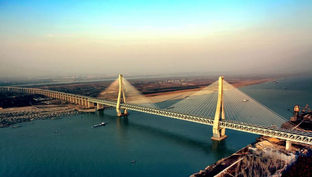 于2020年12月建成通车的连镇铁路五峰山长江大桥,为主跨1092米公铁两用悬索桥,是我国首次在公铁两用桥上采用主跨千米级的悬索桥结构型式,也是世界上运行速度最快、运行荷载最大的千米级悬索桥,展现了我国的科技实力和经济实力。