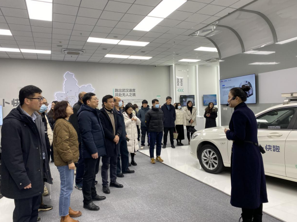 百度萝卜快跑汽车机器人智行谷是此次学习调研的第一站,全体干部职工实地察看汽车机器人智控中心和运营指挥中心,了解到它既是全国最大的自动驾驶运营中心和全球最大5G云驾舱中心,也是自动驾驶国家新一代人工智能开放创新平台华中区域中心的承载地。“萝卜快跑”如今正深受青年人喜爱,大家一边听讲解,一边分享乘坐“萝卜快跑”趣事,现场气氛热烈。