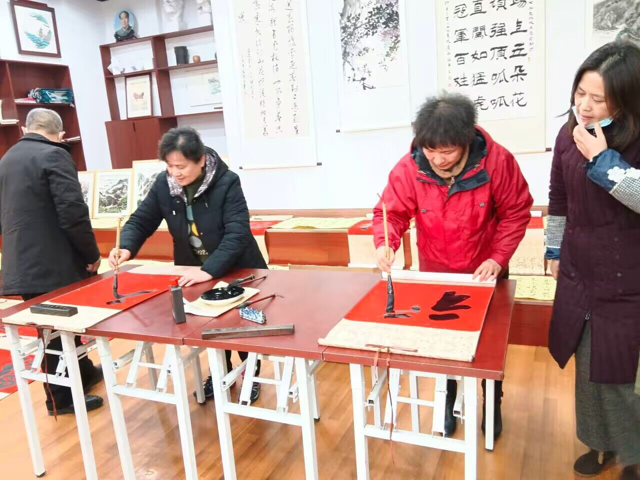 车谷融媒1月23日讯 1月15日,沌阳街道江大园社区党委联合江汉大学书画研究院开展“笔墨浓浓凝书香 新春送福暖民心”志愿服务活动。江汉大学离退休处书法协会的8名老年书法爱好者们挥毫泼墨,将美好祝愿化作一张张寓意吉祥的书法作品。