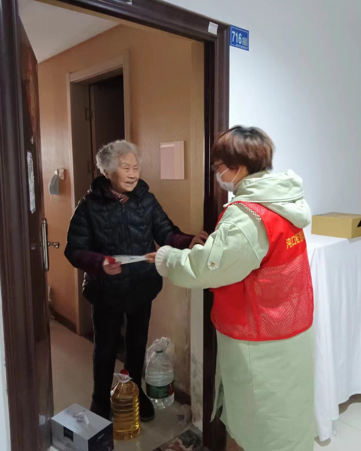 来到89岁高龄的朱奶奶家,志愿者们为她送去油、牛奶等慰问品,同时也送去了节日的问候和祝福。志愿者还详细询问了老人的身体状况和生活情况,认真聆听老人的困难和需求,叮嘱老人注意防寒保暖和居家安全,提高自我防护意识。“每次你们来看我妈妈她都特别高兴!”朱奶奶的小女儿说。