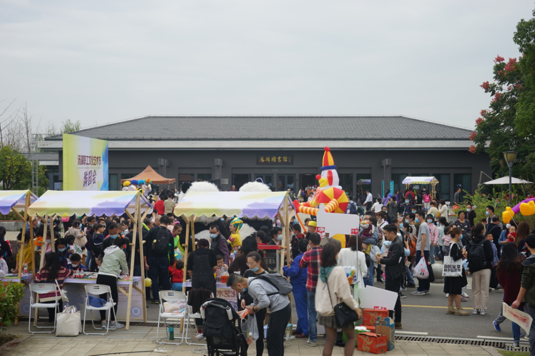 汤湖图书馆承办的汤湖文化游园会带来了古籍拓印体验、非遗市集、汉服朗诵、科学秀、知识问答等一系列活动。现场抗疫主题朗诵《中国英雄与中国力量》激情慷慨,点燃全场;汉服古筝节目《读书之乐》美轮美奂,极具亮点。