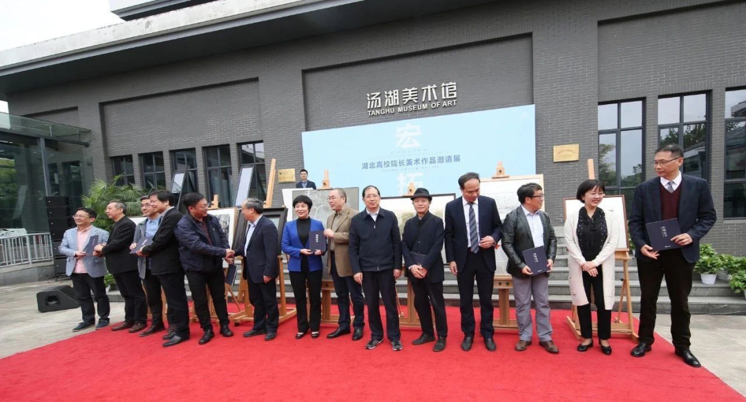 开幕当天,汤湖美术馆联合湖北省美术家协会举办了“宏拓——湖北高校院长美术作品邀请展”,共邀请到湖北省内高等院校的七位艺术家,展出作品105件。