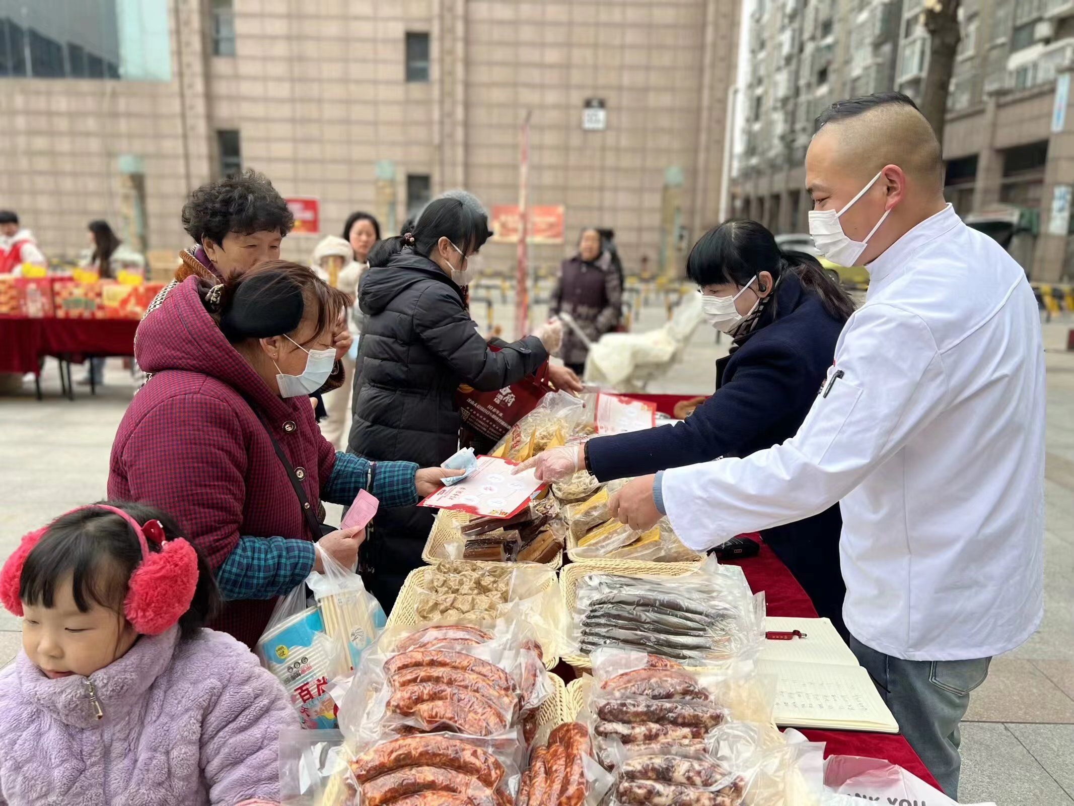 在“炸圆子”摊位上,油炸酥鱼、油炸鱼丸刚刚出锅,香味四溢,吸引大量居民争相品尝、购买。尝到新鲜鱼丸的王阿姨表示:“这个鱼丸子炸的真香,现场制作,品质有保障,正好买上几斤。”新鲜宰割的牛肉摊位上,大家议论纷纷,商量着买哪一块好,“这个牛腿肉不错,牛肚也新鲜”。前来参加活动的居民,个个拎着包满载而归,喜笑颜颜。