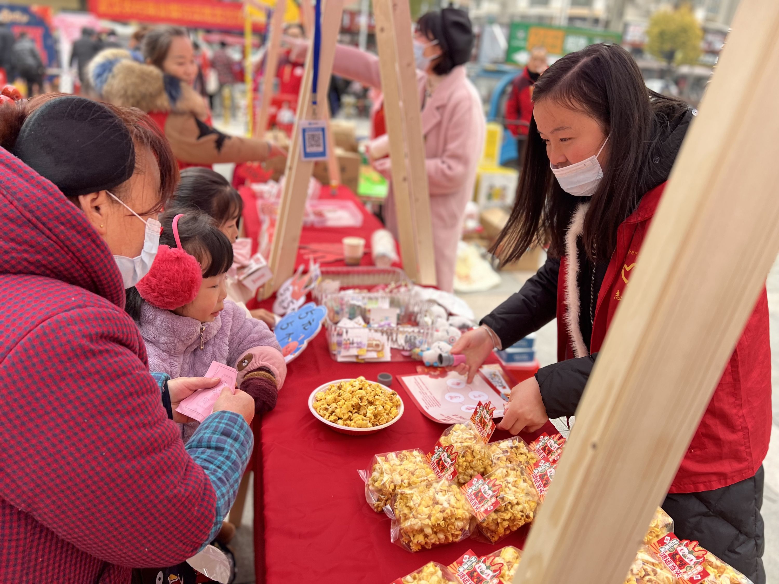 糖葫芦、糖画、爆米花等小吃颇受欢迎。糖画摊位被小朋友们围得水泄不通,在师傅精湛的技艺下,一个个活灵活现的糖画造型跃然出现。小朋友们一手拿着糖葫芦,一手拿着糖画,吃得不亦乐乎。