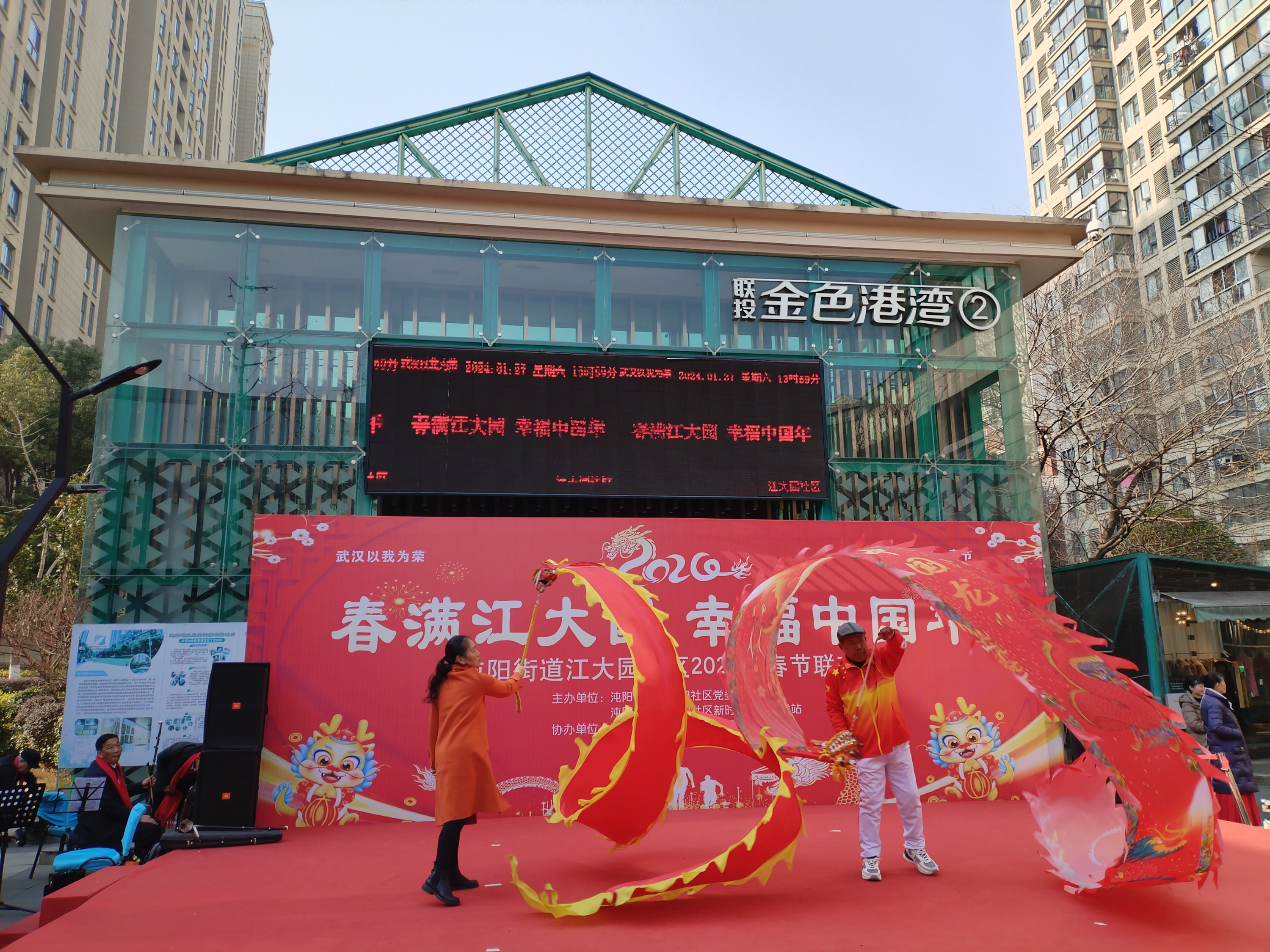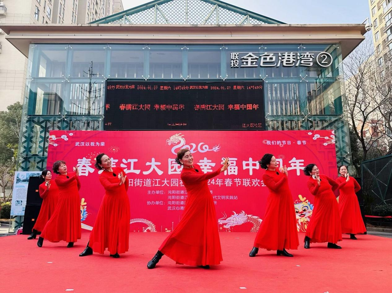 近日,沌阳街道江大园社区新时代文明实践站在联投金色港湾小区商业街广场举办“春满江大园 幸福中国年”2024年主题春节联欢会,通过各类文艺表演增添节日氛围,让辖区居民共同感受节日文化。