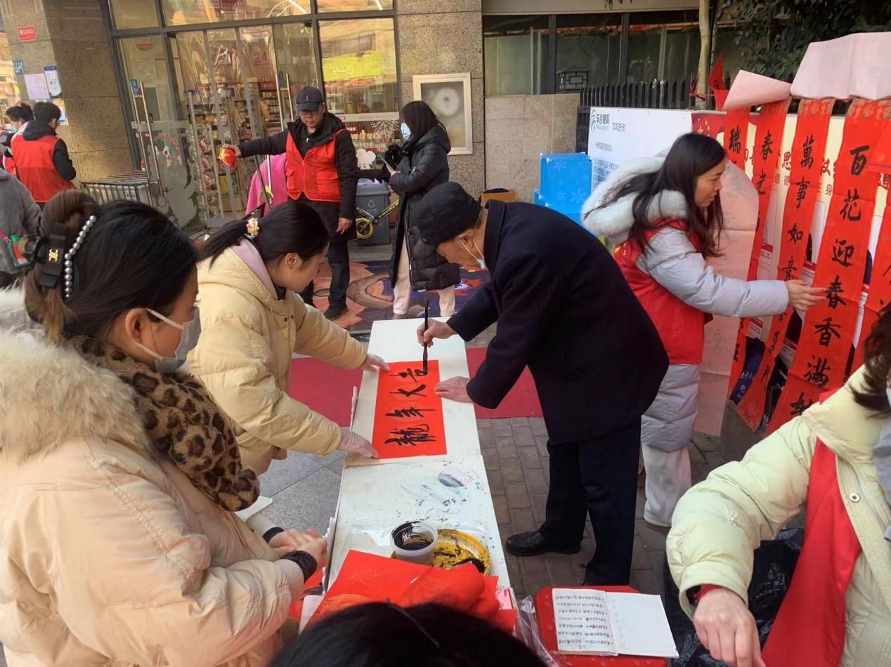 一笔一墨彰显书法魅力,一纸一砚谱写美好愿景。活动现场翰墨飘香、红纸翻飞,书法志愿者挽袖执笔,红纸为底,黑墨为字。一幅幅字体灵动、苍劲有力的新春对联、“福”字跃然纸上。喜庆的红色中映着人们的笑脸,镌刻着一份诚挚的祝愿,也将这浓浓的年味儿和着墨香,酿进“福”字里,为即将到来的新春佳节增添了一抹书香气息。