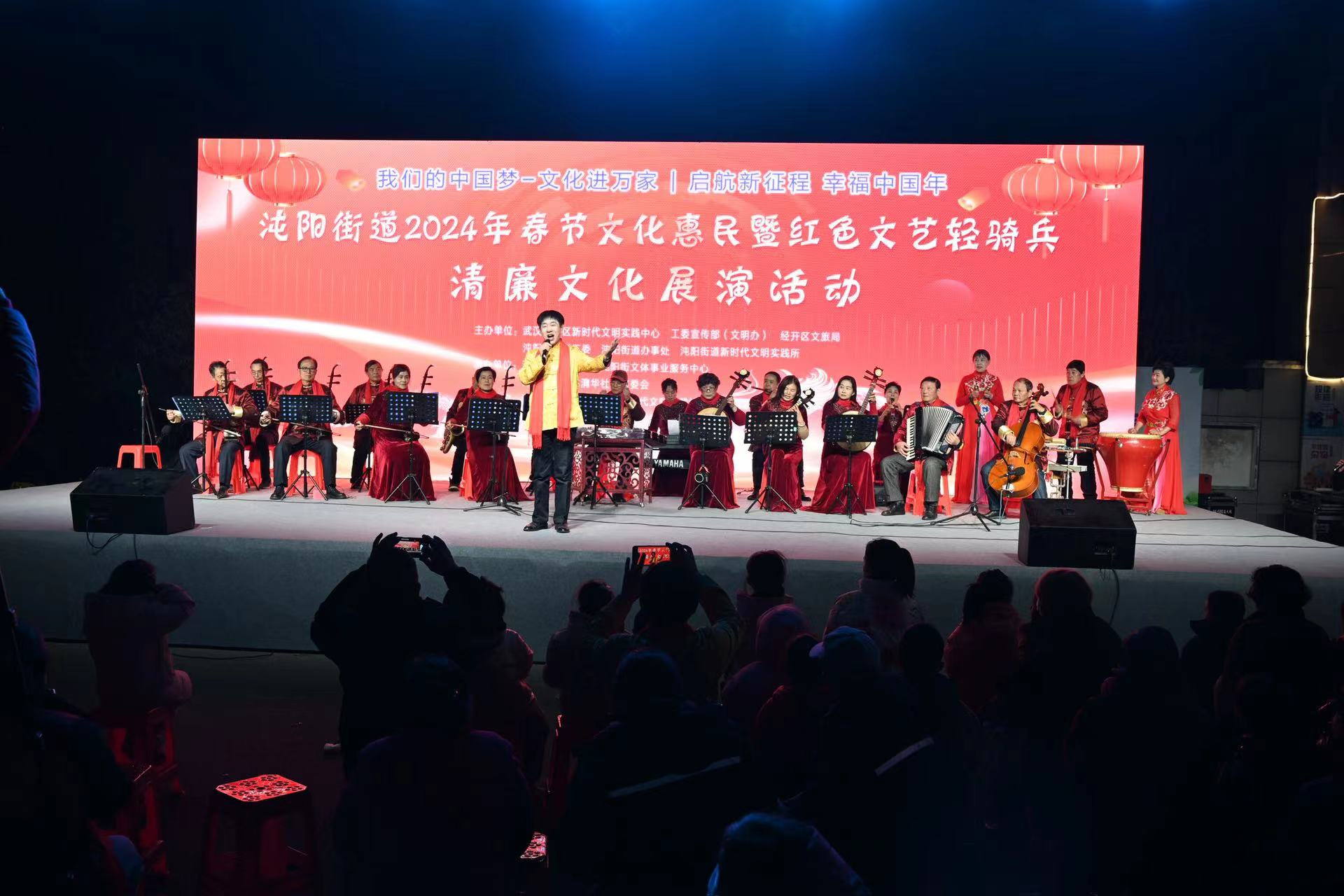 车谷融媒1月31日讯 1月26日,沌阳街道举办春节文化惠民暨红色文艺轻骑兵清廉文化展演活动,沌阳街道新时代文明实践所联合水木清华文明实践站书画、文艺志愿队伍联袂专业艺术团队走进水木清华社区千晴岸小区,通过义写春联送祝福、文艺演出、有奖问答等形式,为居民送去新年的祝福,营造了红红火火过大年的节日氛围。