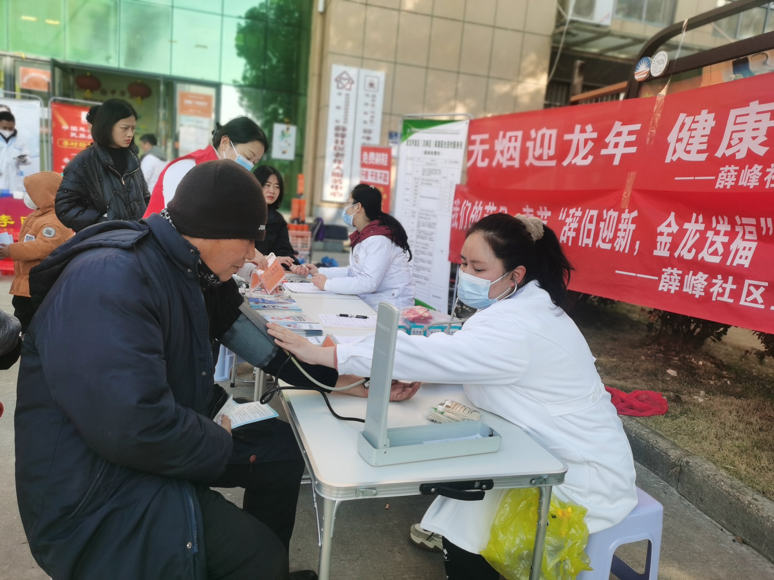 活动当天,南星口腔、欣禾口腔为前来参加活动的老人们检查牙齿,志愿者们为老人理发、擦鞋,薛峰社区卫生院家庭医生为居民免费量血压、听心率,做好听诊登记,针对个人健康状况,提醒合理饮食、调配,并为社区重点人群开展上门服务,详细了解他们健康状况的同时也送上“新年健康包”。
