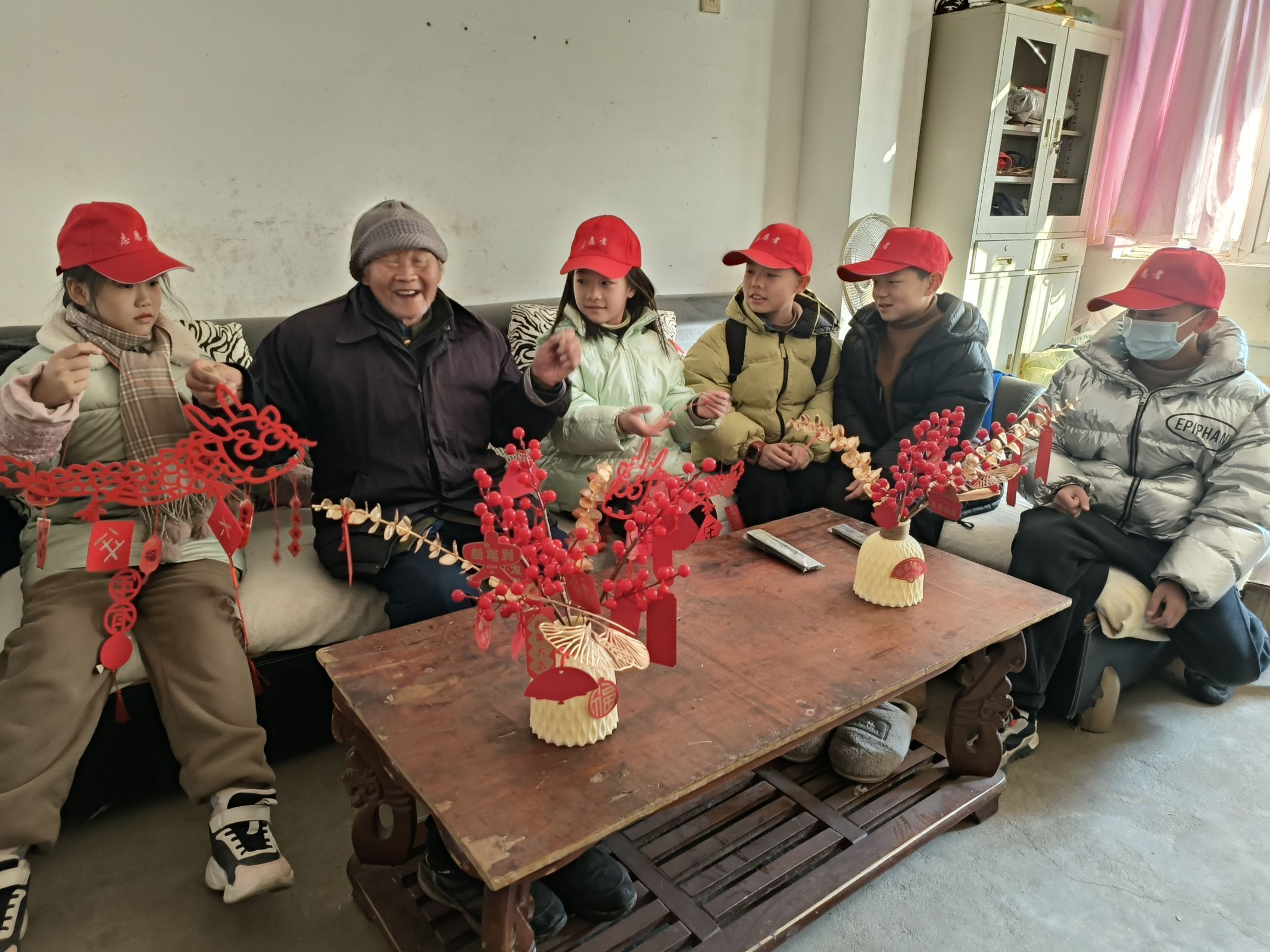 剪窗花活动结束后,孩子们在志愿者的带领下,手捧窗花,探访了社区3名孤寡老人。他们将亲手制作的窗花送给老人,并为老人打扫卫生,布置新年氛围,提前送上诚挚的祝福。
