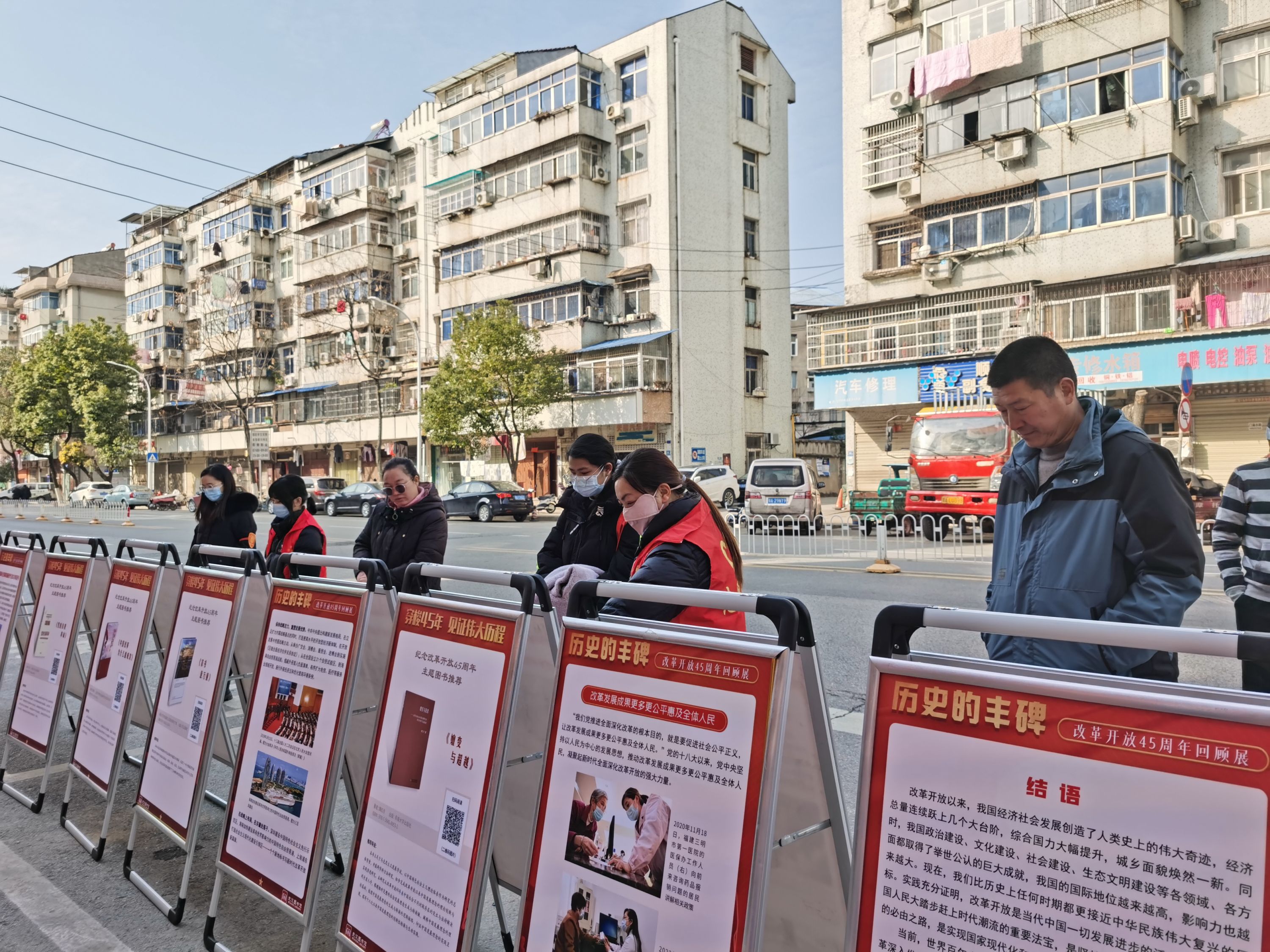图书馆工作人员还在摆放了“历史的丰碑——改革开放45周年回顾展”展板供居民阅读,展览以“改革开放的起步、全面展开、波折、新阶段、深化和新时代为主线,回望了改革开放 45年的伟大历程、重大成就,同时也展望未来,继续沿着改革开放之路,朝着实现中华民族伟大复兴的宏伟目标阔步前进。