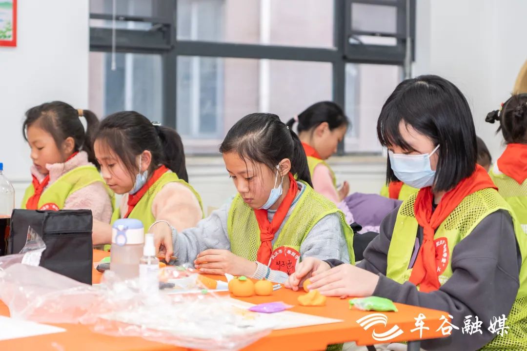 在蒲潭社区“寒假学堂”托管班,学生们正在进行手工制作。一节课下来,孩子们的课桌上摆满了惟妙惟肖的桔子。社区志愿者王馨怡介绍,托管班学生中有低年级和高年级,年龄跨度较大,为让所有学生都适应课程,特别设置了手工课,培养孩子的创造意识、设计思维、手脑协调能力。