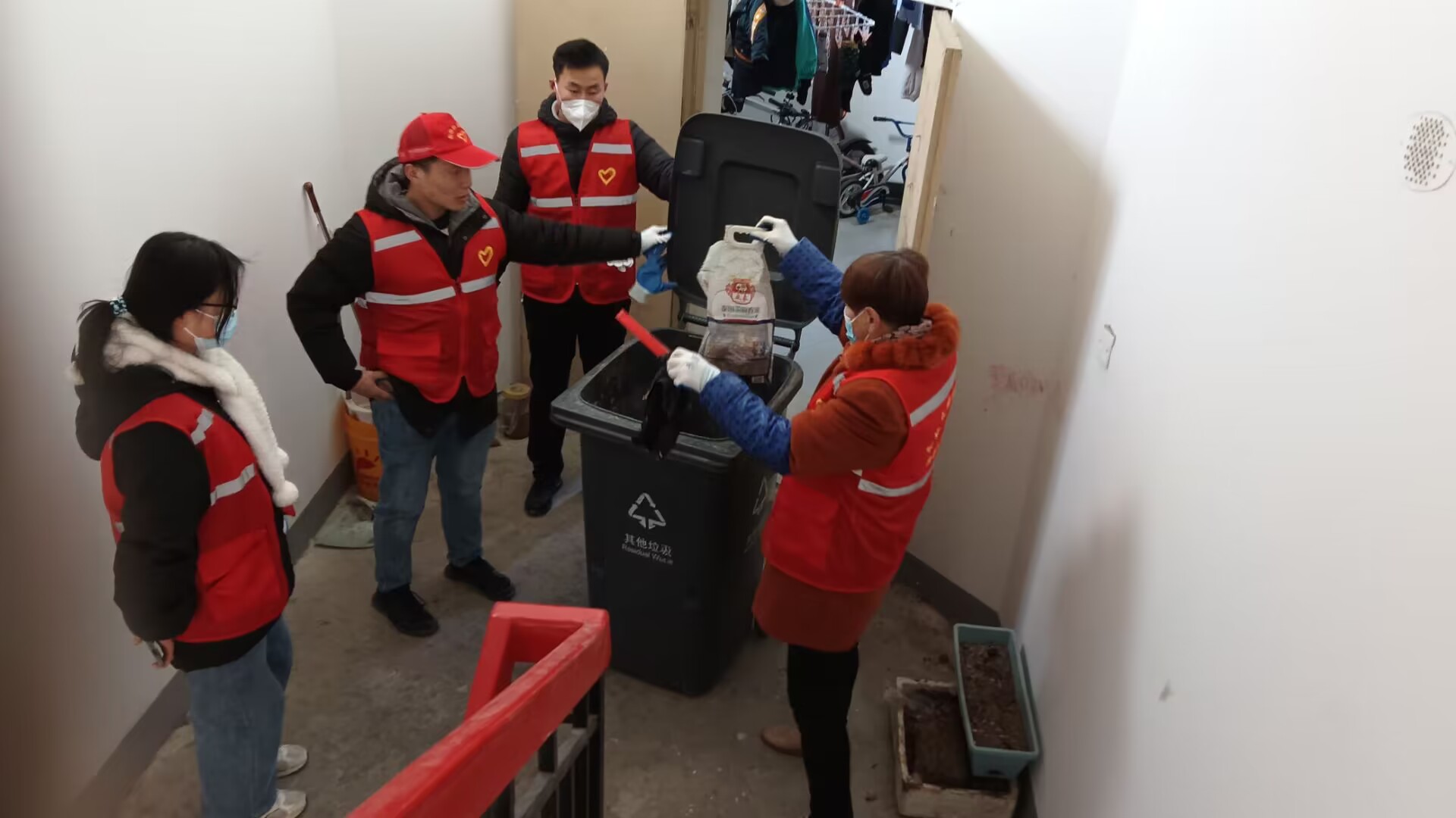 1月25日,沌口街道新都社区居住地党员联合志愿者、楼栋长齐聚吉祥国际小区,开展环境卫生整治攻坚行动。志愿者们戴着手套、推着垃圾桶、拿着扫把,从楼道顶层自上而下逐层清理,兵分两路分头行动。