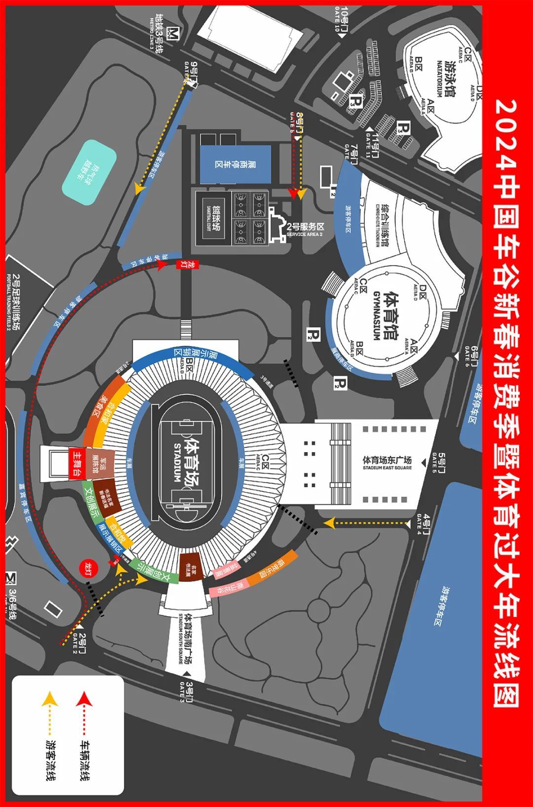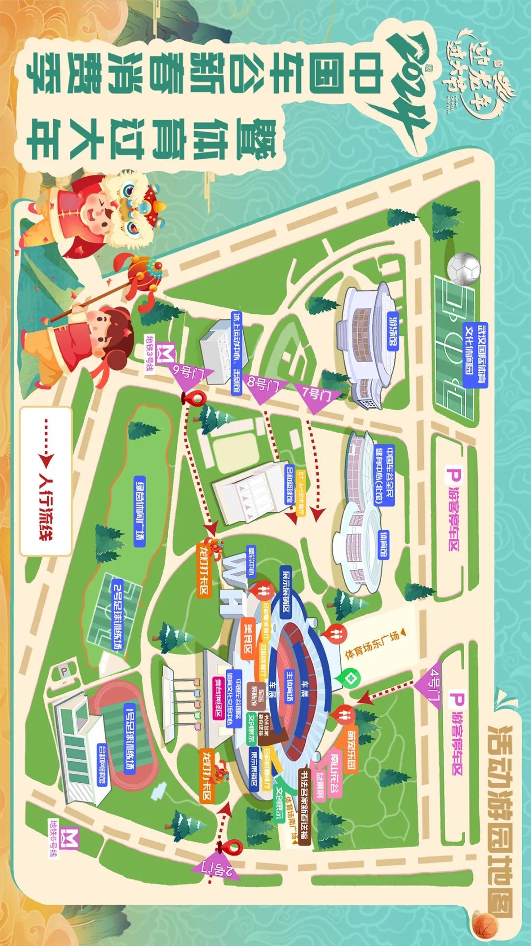自驾:导航搜索“沌口体育中心停车场湖北省武汉市蔡甸区”,免费停至武汉体育中心社会停车场。
